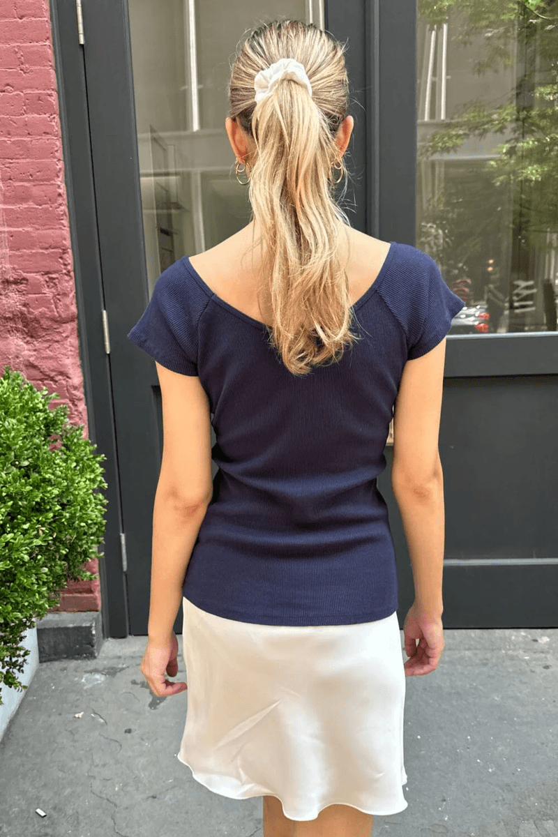 pozvedněte Svůj Každodenní šatník S brandy Melville Ada Top V Námořnické Modři. Tento Stylový žebrovaný Top S Přiléhavým Střihem Kombinuje Pohodlí A Chic Design, Což Z Něj činí Nezbytnost Pro Módní Nadšence.