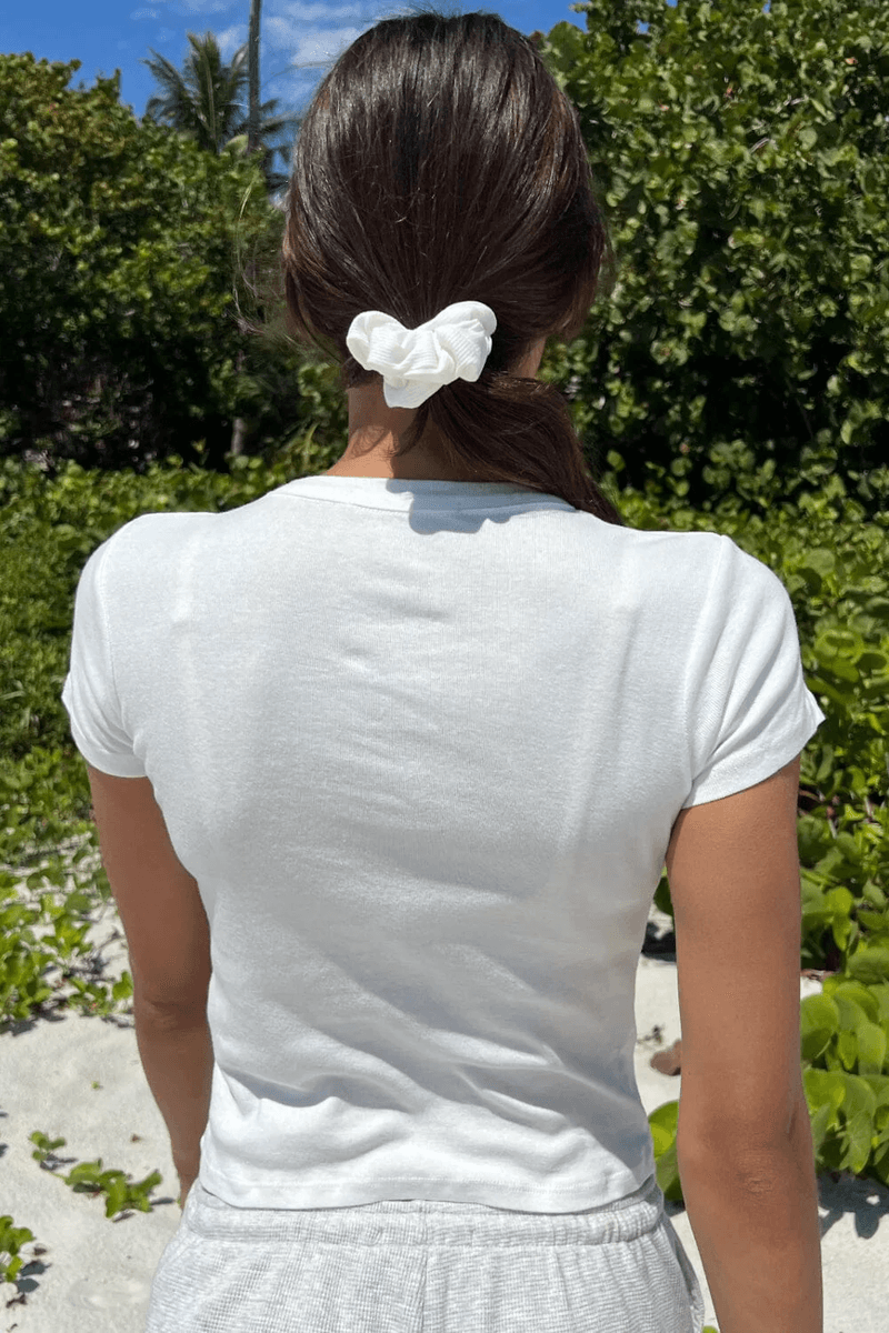 pozvedněte Svůj Každodenní šatník S brandy Melville Hailie Top Bílý, Ultimátním Měkkým Přiléhavým Základním Tričkem. Ideální Pro Jakoukoli Příležitost, Toto Tričko Kombinuje Pohodlí A Styl Bez Námahy.