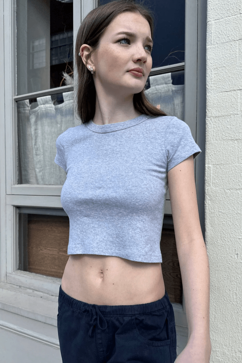 top Brendy Melville Hailie Heather šedé Má Délku 17 Palců (41 Cm) A Obvod Hrudníku 13 Palců (33 Cm), Což Z Něj činí Těsný, Ale Pohodlný Střih. Jeho Lehká Tkanina Je Ideální Pro Vrstvení Nebo Nošení Samostatně. Tento Top Je Perfektní Pro Vytvoření Uvolněného Vzhledu, Zatímco Stále Ukazuje Váš Jedinečný Styl.