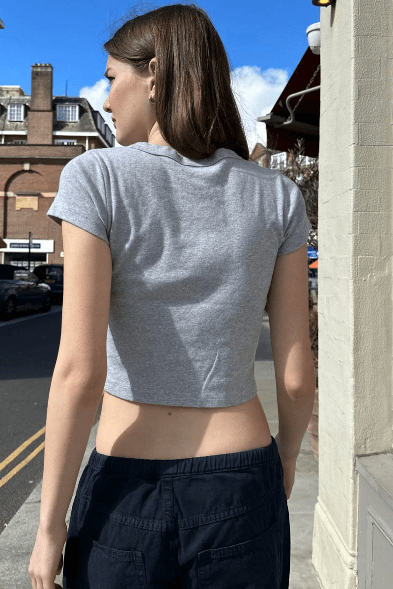 pozvedněte Svůj Ležérní Styl S topem Brendy Melville Hailie Heather šedé. Tento Přiléhavý, Zkrácený Top Spojuje Pohodlí S Chic Módou, Což Z Něj činí Dokonalý Doplněk Vaší Garderoby. Ať Už Se Chystáte Na Brunch Nebo Se Jen Tak Povalujete Doma, Tento Univerzální Kousek Slibuje, že Vás Udrží V Bezstarostně Stylovém Vzhledu.
