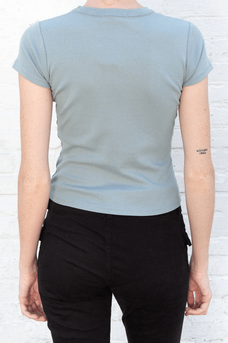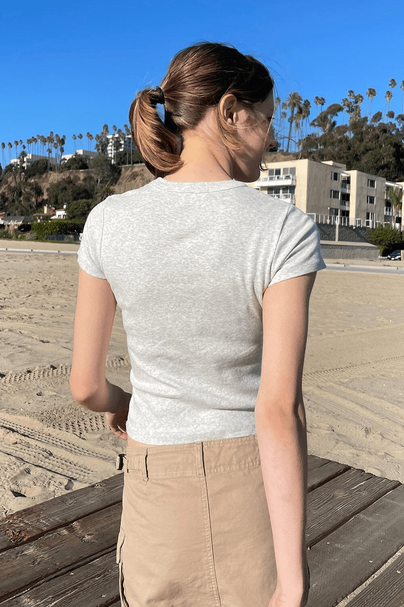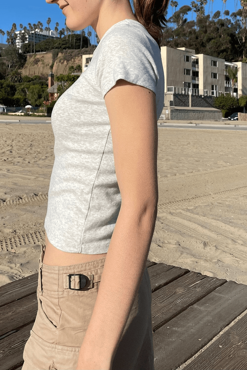 top Brendy Melville Hailie Stříbrně šedé Je Více Než Jen Základní Tričko; Je To Nezbytný Kousek Pro Každého Módního Nadšence. Toto Tričko Je Ideální Pro Neformální Výlety, Lenošení Doma Nebo Oblečení Na Večer. Kombinujte Ho Se Svými Oblíbenými Džíny Nebo Elegantní Sukní Pro Kompletní Vzhled, Který Se Bez Problémů Přechází Z Dne Na Noc.