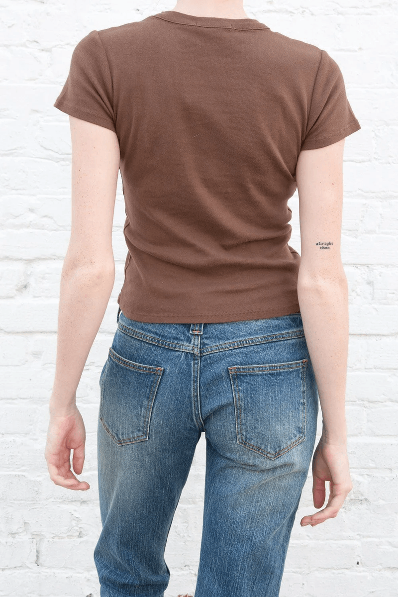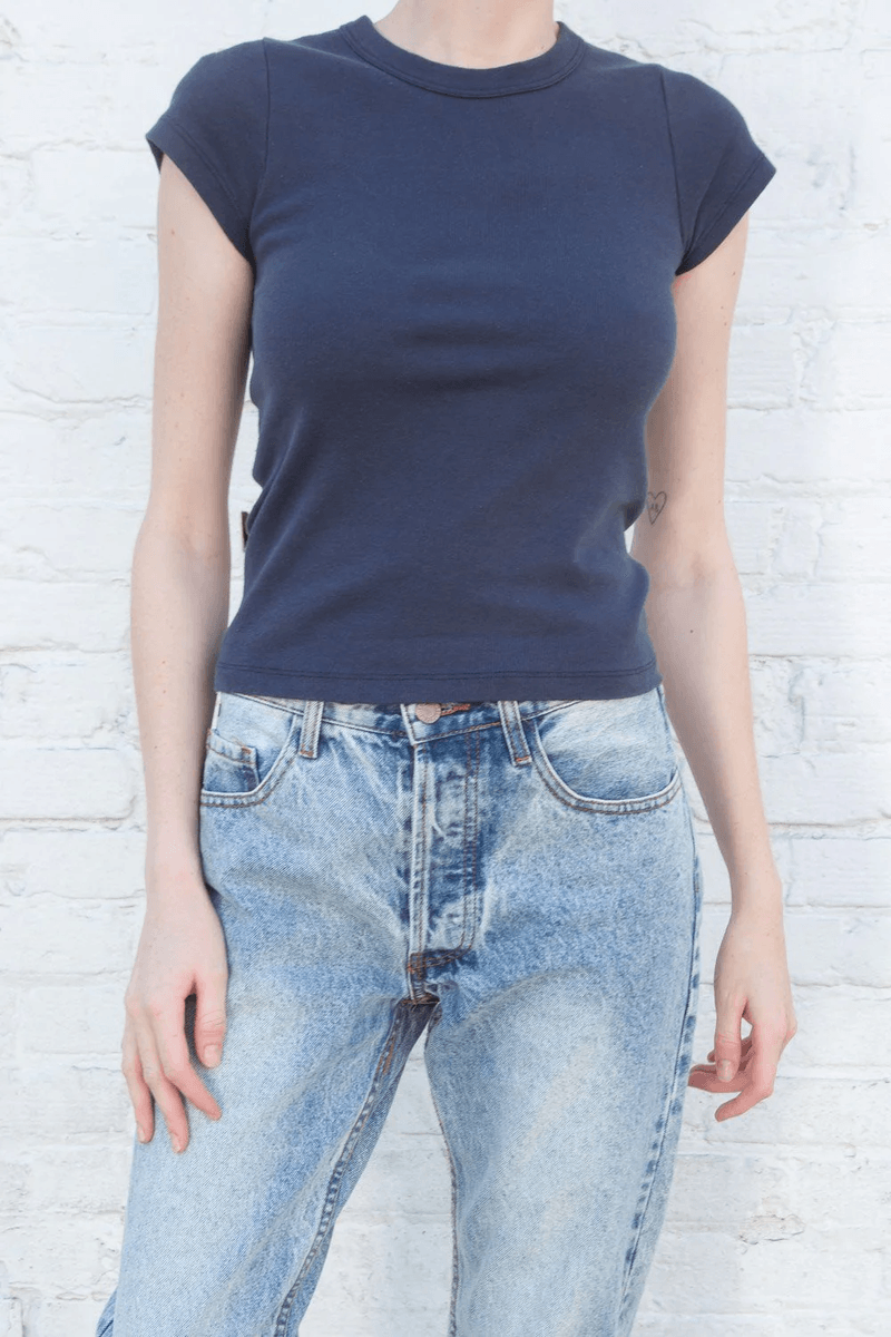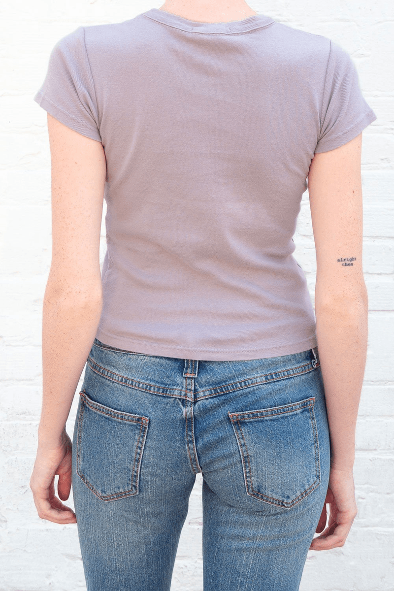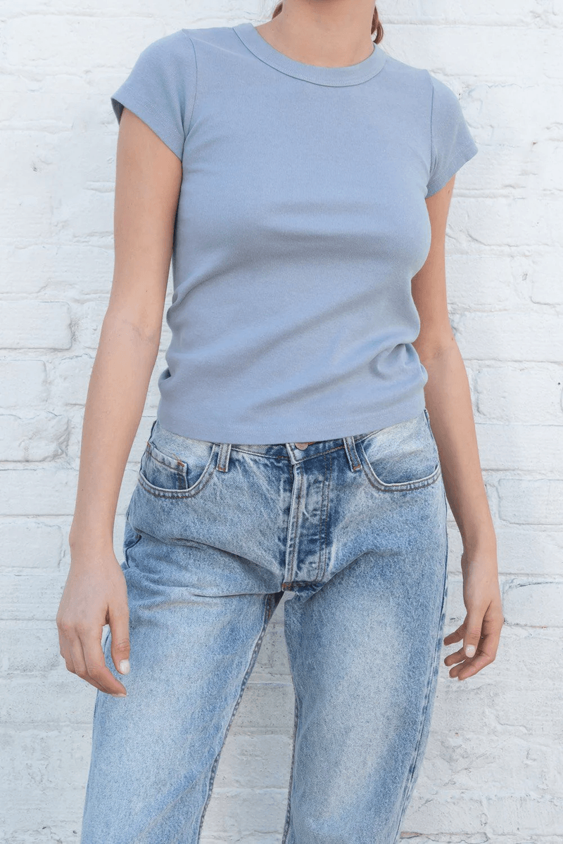 top Brendy Melville Hailie Stříbrně šedé Je Více Než Jen Základní Tričko; Je To Nezbytný Kousek Pro Každého Módního Nadšence. Toto Tričko Je Ideální Pro Neformální Výlety, Lenošení Doma Nebo Oblečení Na Večer. Kombinujte Ho Se Svými Oblíbenými Džíny Nebo Elegantní Sukní Pro Kompletní Vzhled, Který Se Bez Problémů Přechází Z Dne Na Noc.