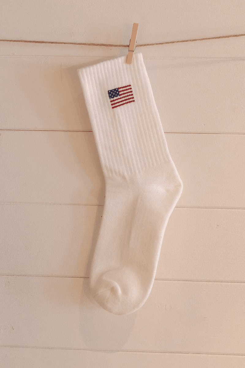 Don't miss out on the chance to elevate your accessory collection! Grab your Brandy Melville American Flag Crew Socks White today and show off your unique style with pride!