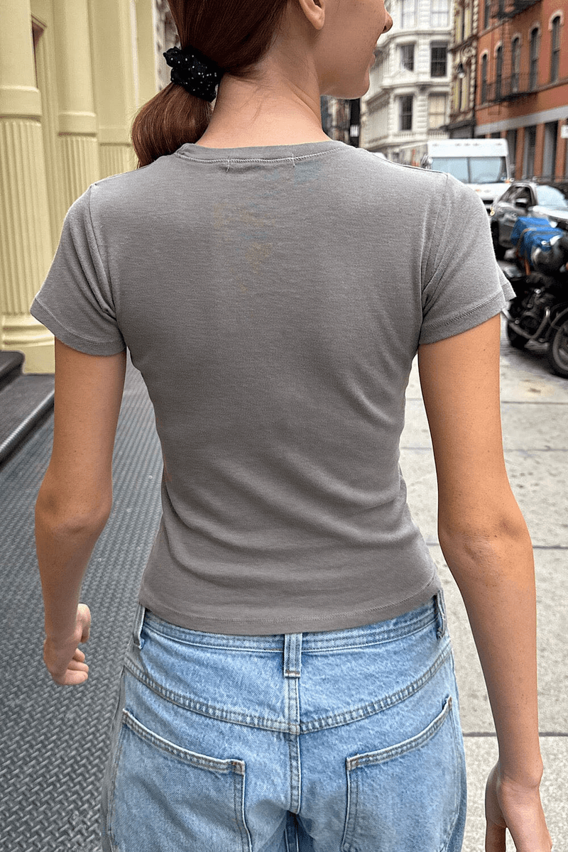 قم بترقية خزانة ملابسك مع قمة براندي ميلفيل لورين باللون الرمادي الفاتح. هذه القميص الأساسية تجمع بين الراحة والأناقة، مما يجعلها ضرورية لأي شخص يتبع الموضة. مثالية للتنسيق أو ارتدائها بمفردها، تم تصميم هذه القميص الضيقة لتصبح القطعة المفضلة لديك.