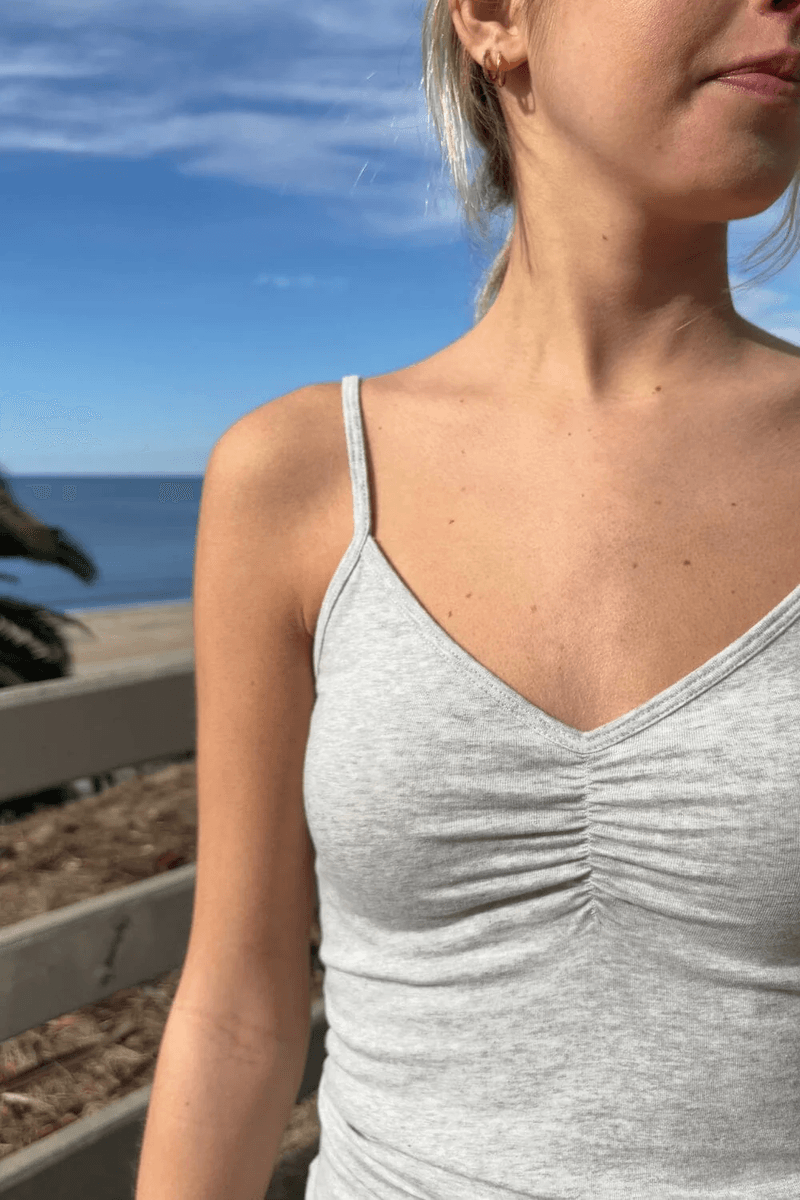 This tank top is ideal for layering or wearing solo, making it a versatile choice for any season. Its timeless grey hue complements a variety of colors, ensuring you can mix and match effortlessly.