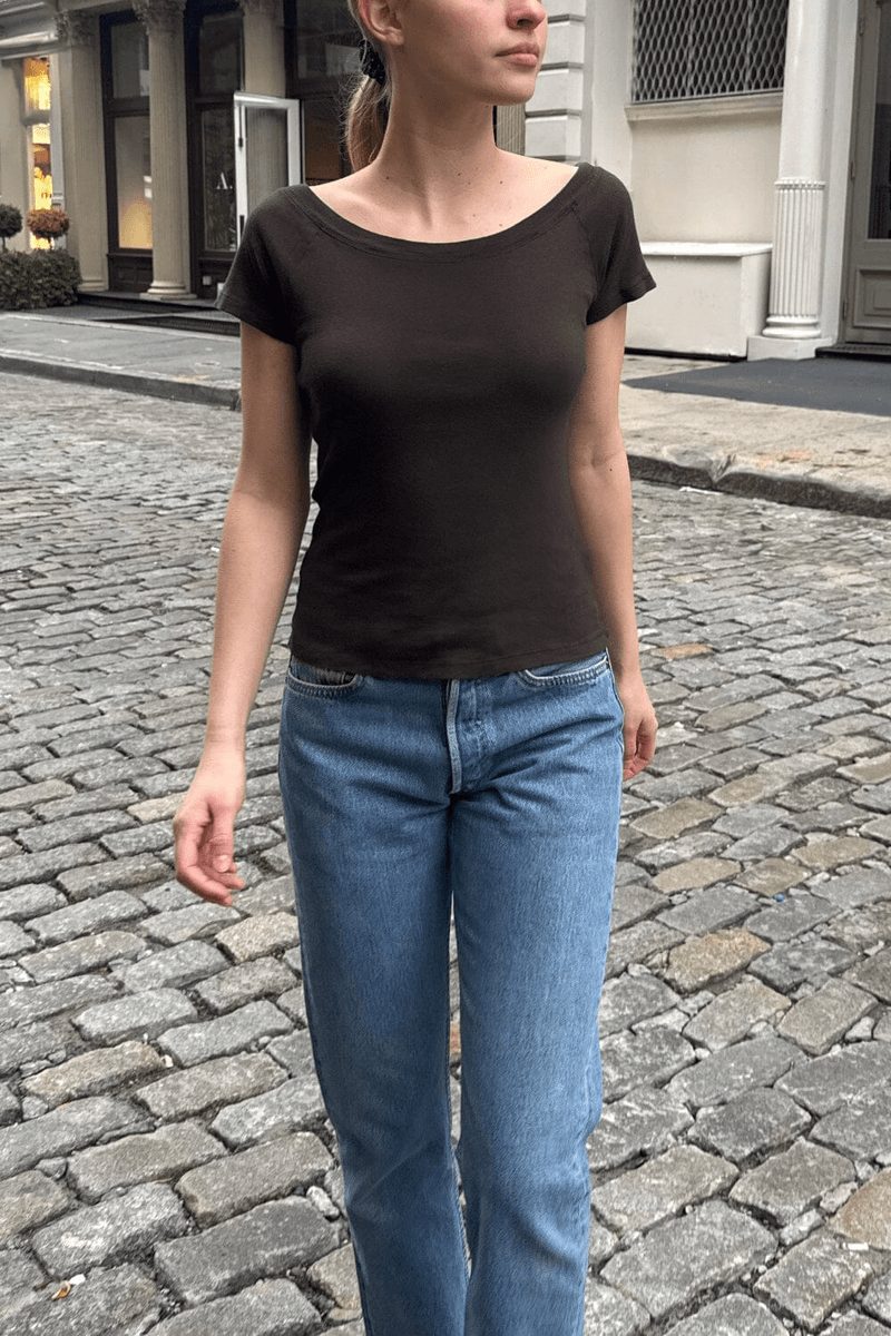 Elevate your wardrobe with the stunning Brandy Melville Ginny Top Mocha. This chic, fitted top is designed to make you feel confident and stylish, whether you're heading out for brunch or enjoying a casual day out. Its off-the-shoulder silhouette adds a touch of elegance, while the stretchy cotton fabric ensures all-day comfort.