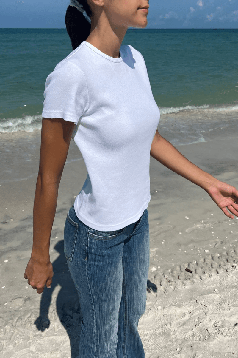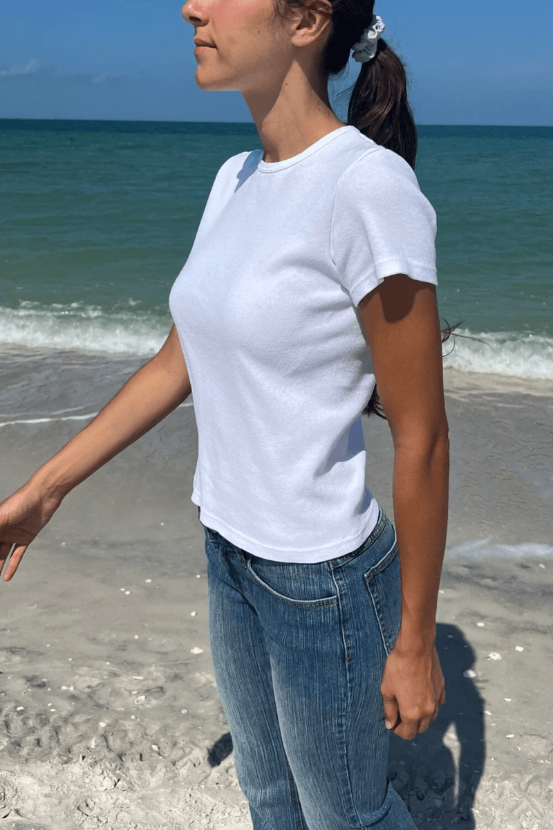 Elevate your wardrobe with the Brandy Melville Halie Top White. This essential piece combines style and comfort, making it a must-have for any fashion-forward individual. With its classic crewneck design and versatile short sleeves, this top is perfect for casual outings or layering under your favorite jacket.