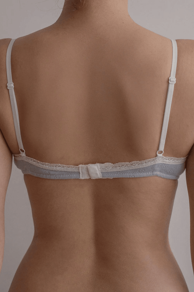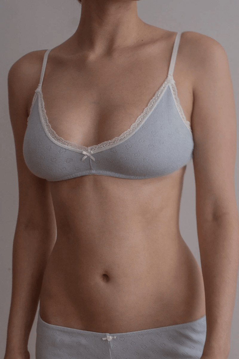 Introducing the Brandy Melville Lace Heart Eyelet Bra in Light Sky Blue