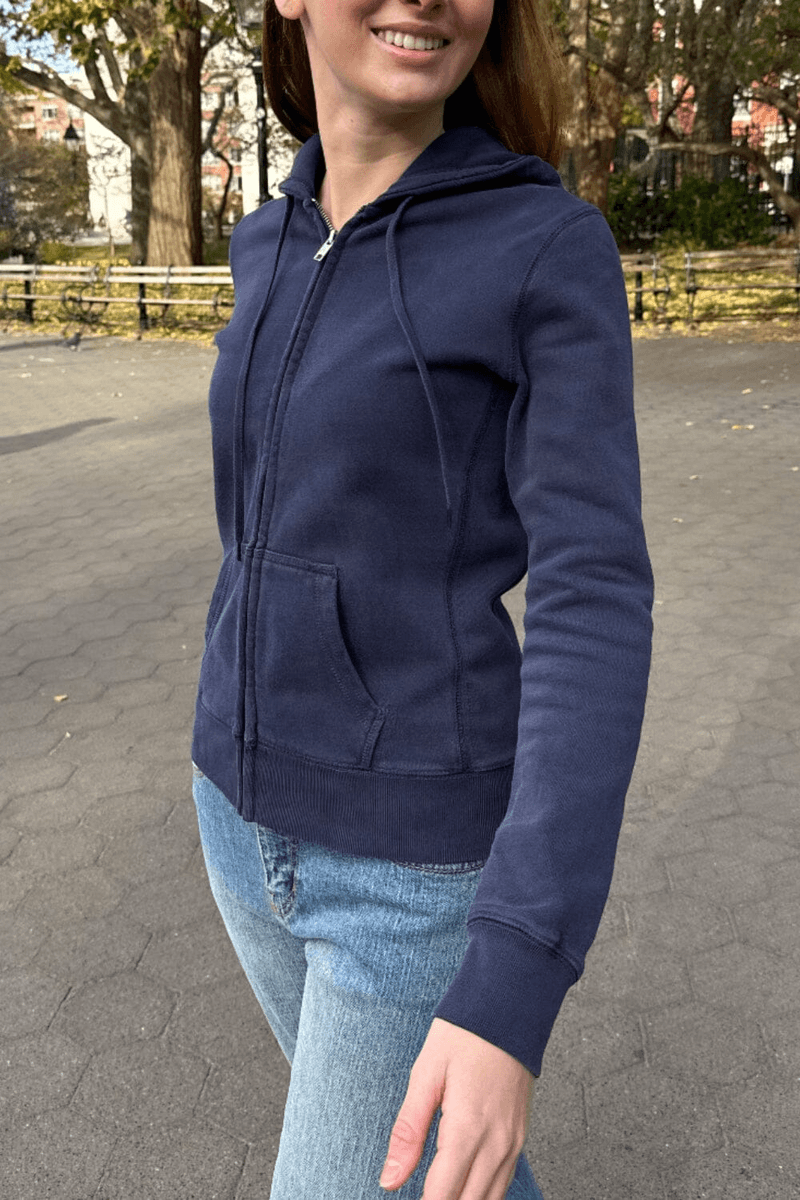 Elevate your casual wardrobe with the Brandy Melville Christy Hoodie Classic Navy. This essential zip-up hoodie combines style and comfort, making it the perfect addition to any outfit. Whether you're lounging at home or heading out for a casual day, this hoodie has you covered.
