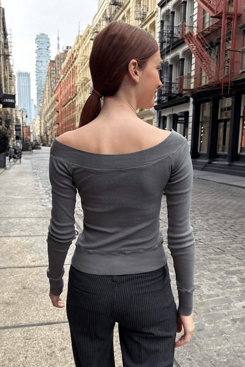 Elevate your wardrobe with the stylish Brandy Melville Ginny Top Dark Grey. This chic, off-the-shoulder design combines comfort and elegance, making it a must-have for any fashion-forward individual. Perfect for casual outings or dressy occasions, this versatile piece will quickly become a favorite in your collection.