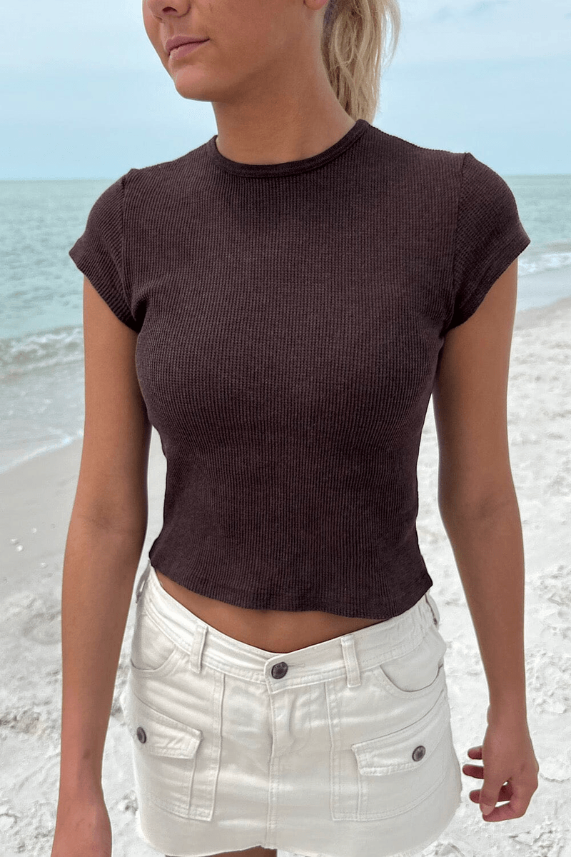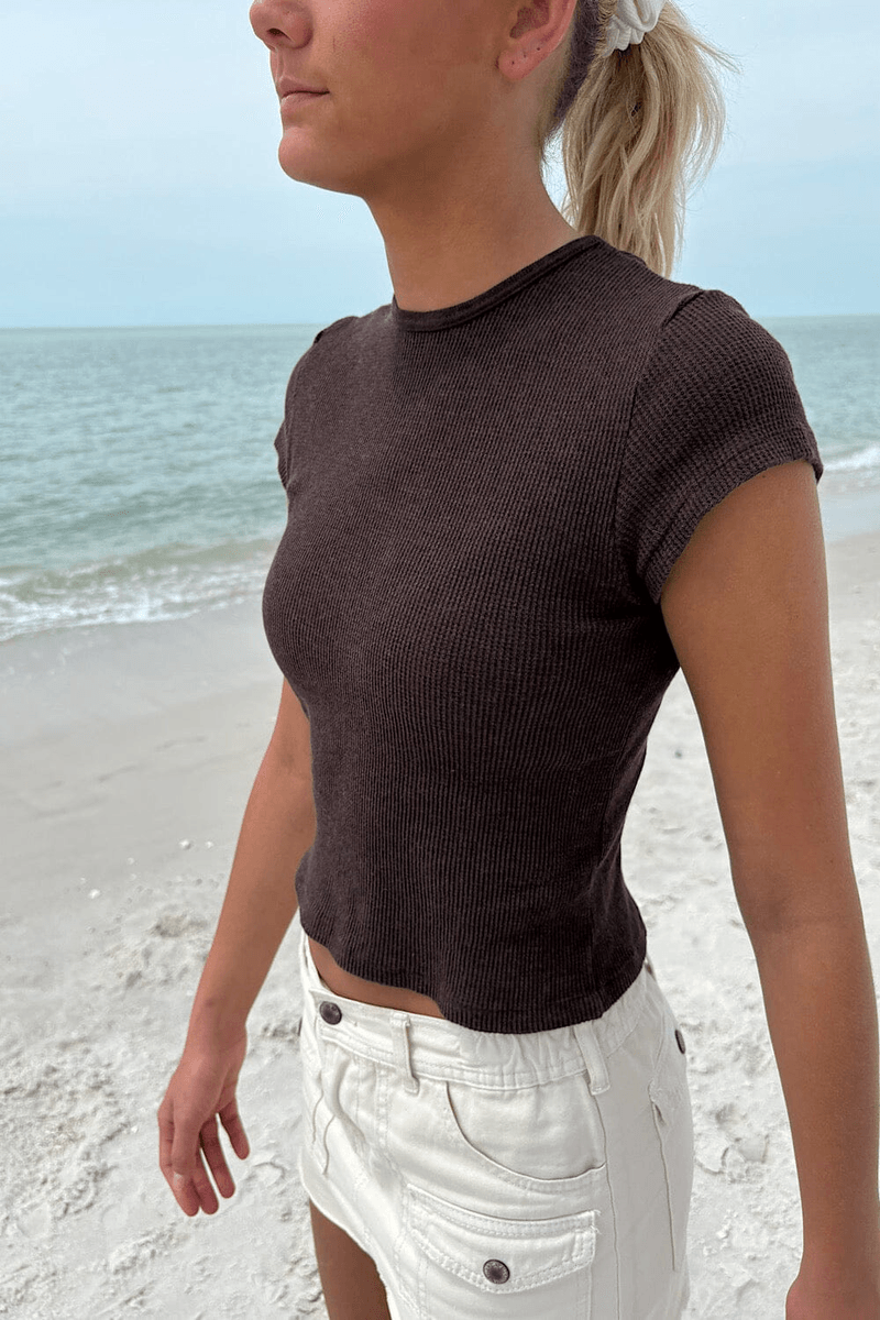 hnědý Termální Top Brandy Melville Ashlyn Má Délku 17 Palců (43 Cm) A Obvod Hrudníku 14 Palců (35 Cm), Což Z Něj činí Ideální Volbu Pro Různé Typy Postavy. Tento Základní Top Není Jen Nezbytností; Je To Módní Základ, Který Můžete Obléknout Nebo Svléknout. Ať Už Jdete Na Přednášku, Běháte Po Nákupech Nebo Si Užíváte Večer Venku, Tento Termální Top Je Vaší Volbou číslo Jedna.