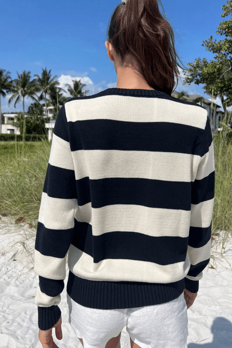 Brandy Melville Brianna Bavlněný Silný Pruhovaný Svetr Tmavě Námořnický A Slonovinové Pruhy
