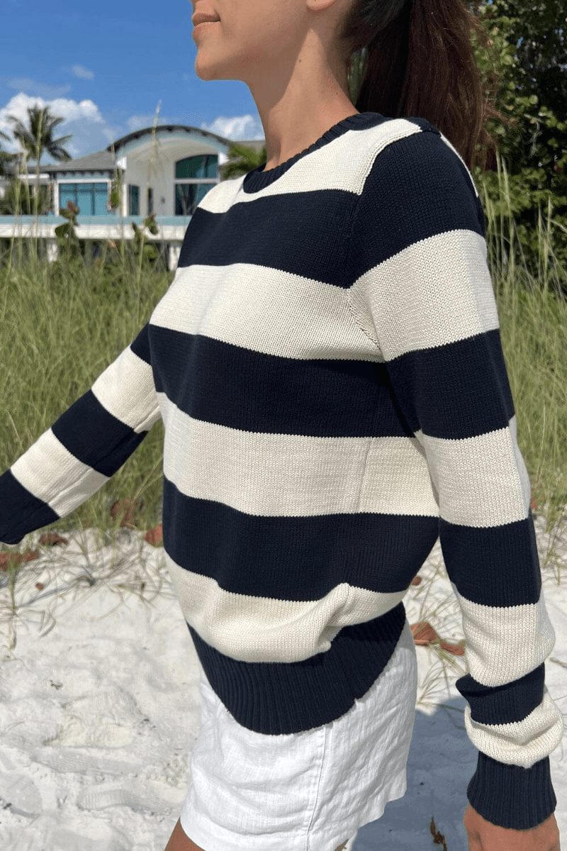 - stylový Design: Výrazné Tmavě Námořnické A Slonovinové Pruhy Dodávají Chic, Nadčasový Vzhled.