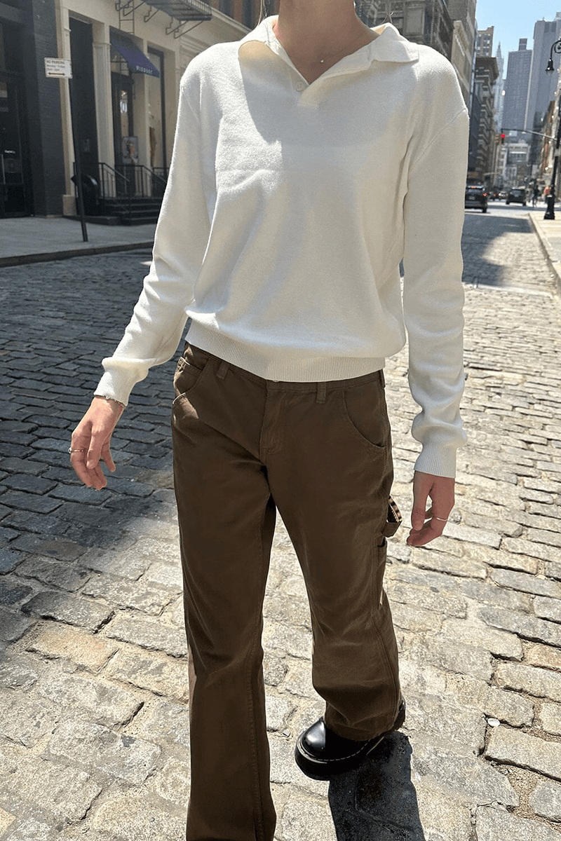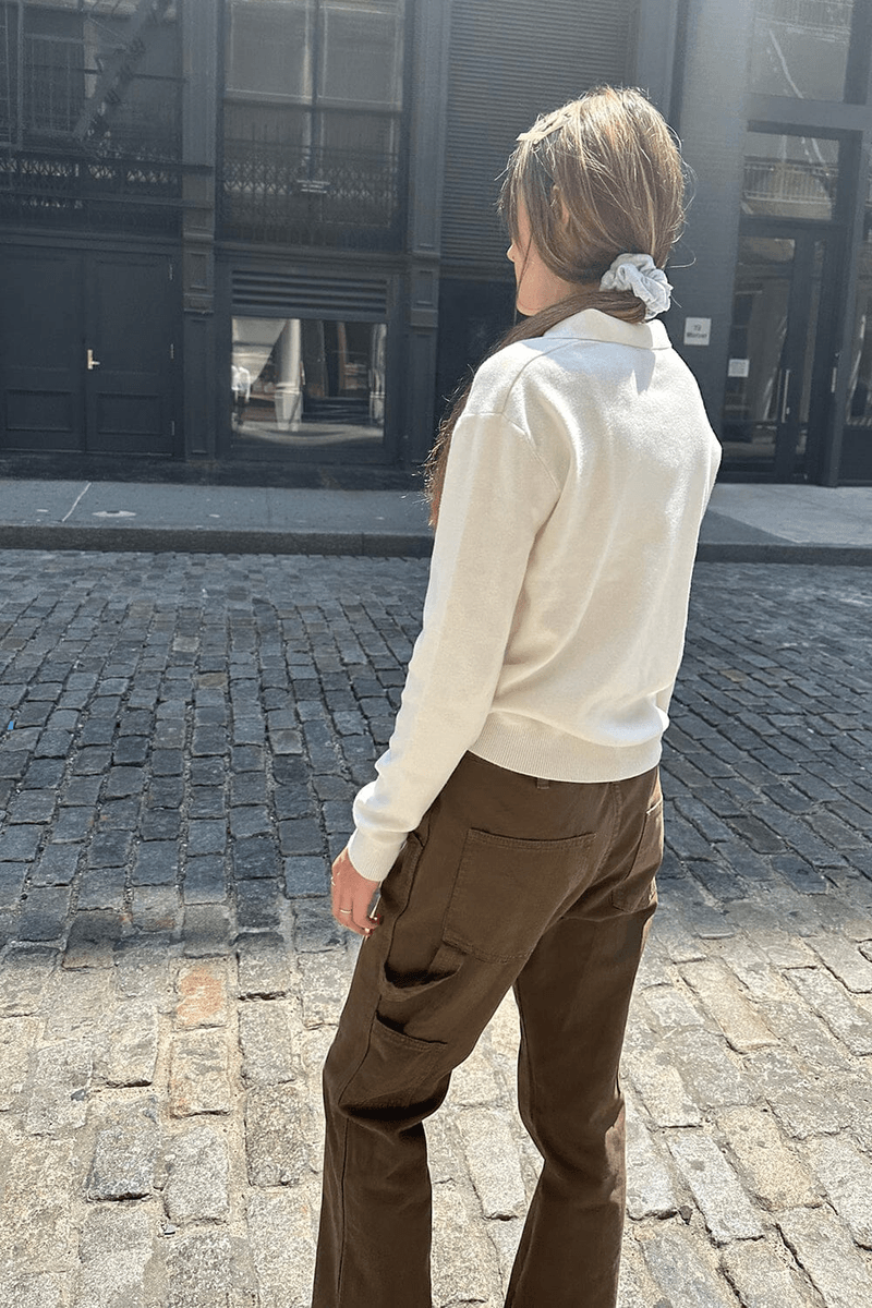 svetr Brandy Melville Camilla V Přírodní Bílé Je Vyroben Z Vysoce Kvalitní Směsi Bavlněné Pleteniny, Která Slibuje Trvanlivost A Měkkost. Límeček Na Knoflíky Poskytuje Sofistikovaný Dotek, Což Ho činí Vhodným Jak Pro Neformální Výlety, Tak Pro Více Elegantní Akce. Kombinujte Ho Se Svými Oblíbenými Džíny Pro Uvolněný Vzhled Nebo Ho Oblečte Se Sukní Na Večer Ven. Tento Svetr Je Nezbytností Ve Vašem šatníku, Která Splňuje Požadavky Jakékoli Příležitosti.
