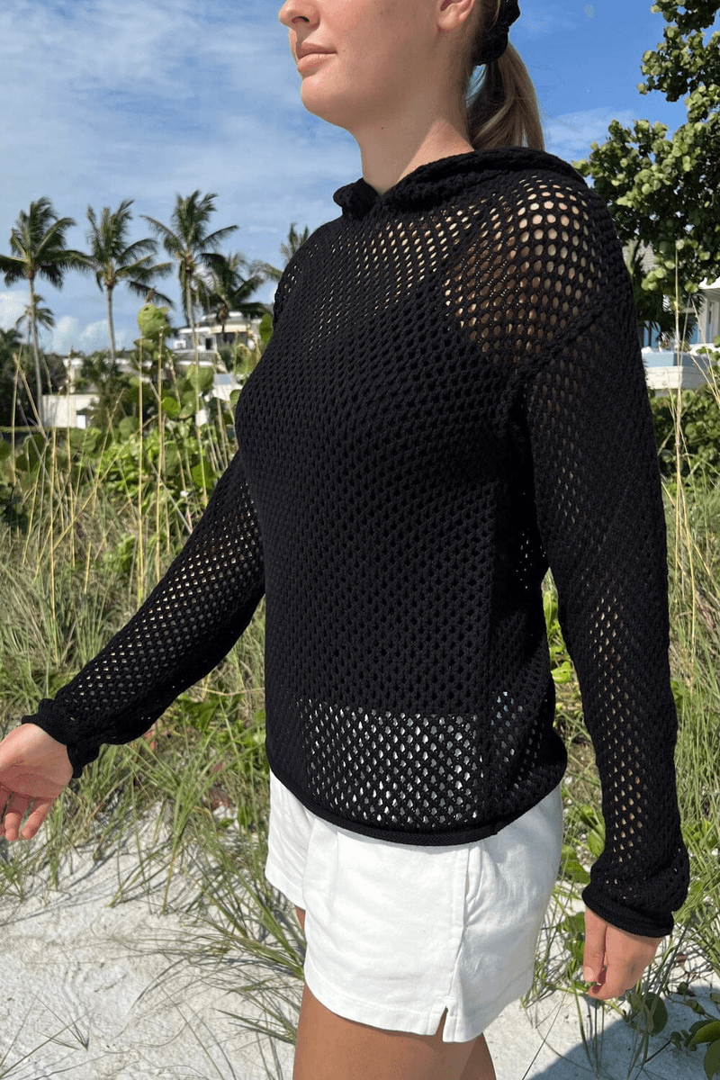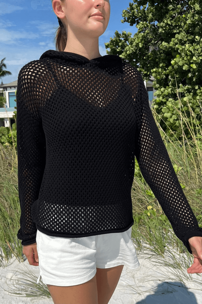 pozvedněte Svůj Ležérní Styl S brandy Melville Christy Net Hoodie černé. Tento Chic, Regular-fit Hoodie Kombinuje Pohodlí A Sofistikovanost, Což Z Něj činí Nezbytnost Pro Jakýkoli šatník. Vyrobeno Ze 100% Bavlny, Tento Měkký Strojově Háčkovaný Síťový Hoodie Je Ideální Pro Vrstvení Nebo Nošení Samostatně.