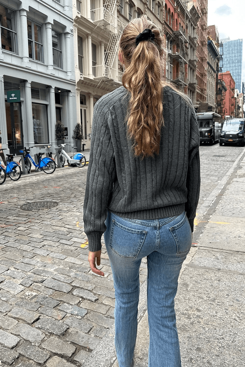 svetr Z Bavlny Brandy Melville Ida Pletený Z Příze S V-výstřihem V Barvě Uhlí Má Klasický Pletený Vzor, Který Dodává Texturu A Zajímavost Vašemu Outfitu. S Délkou 25" (64 Cm) A Obvodem Hrudníku 19" (46 Cm) Se Tento Svetr Krásně Splývá, Což Z Něj činí Ideální Volbu Pro Vrstvení V Chladnějším Počasí.