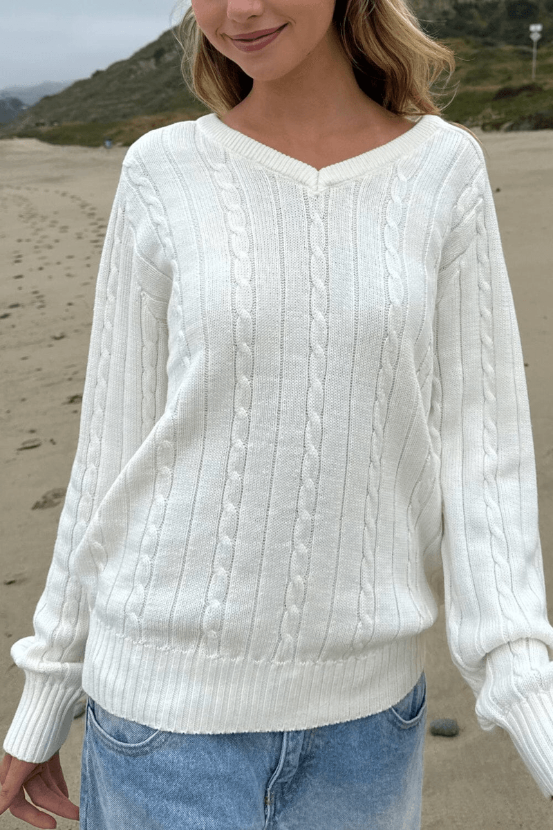 Brandy Melville Ida Bavlněný Pletený Svetr S V-výstřihem Slonová Kost