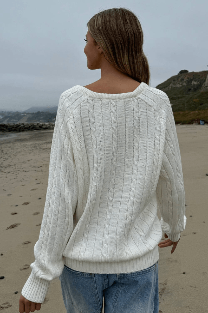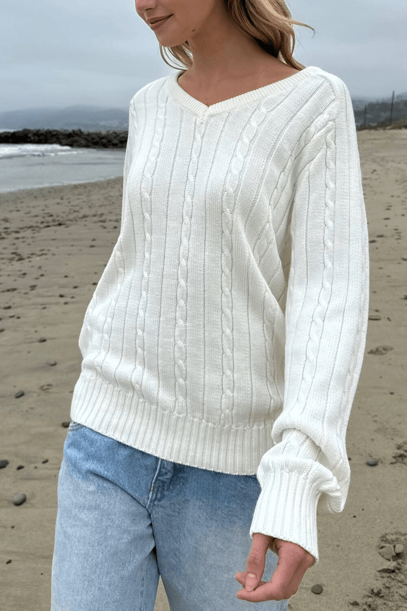 vlněný Svetr V Krémové Barvě Brandy Melville Ida Je Navržen Pro Ty, Kteří Ocení Nadčasovou Módu. Jeho Měkká Bavlněná Směs Vás Udrží V Teple A Zároveň Umožňuje Prodyšnost. Vzor Pleteniny Přidává Texturu, Což Usnadňuje Kombinaci S Vašimi Oblíbenými Džíny Nebo Sukněmi. Ať Už Se Chystáte Na Brunch Nebo Si Užíváte útulný Večer Doma, Tento Svetr Je Vaší Volbou číslo Jedna.