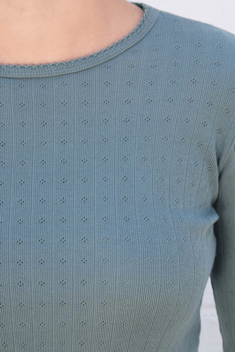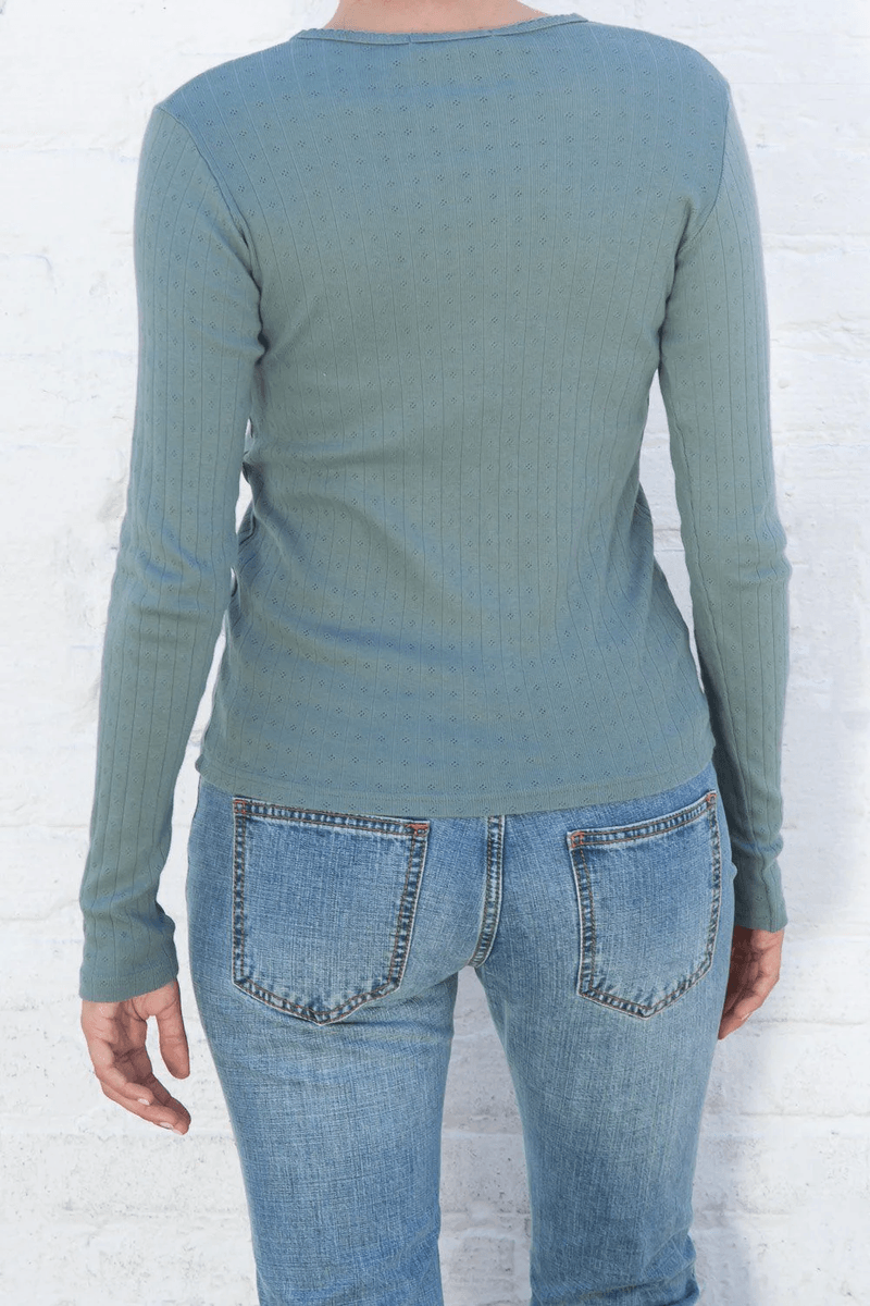 pozvedněte Svůj šatník S Ohromujícím brandy Melville Leah Scallop Eyelet Top V Tmavě šalvějově Zelené. Tento Chic Dlouhý Rukáv Kombinuje Eleganci A Pohodlí, Což Z Něj činí Dokonalý Doplněk K Vašim Každodenním Nebo Slavnostním Outfitům.