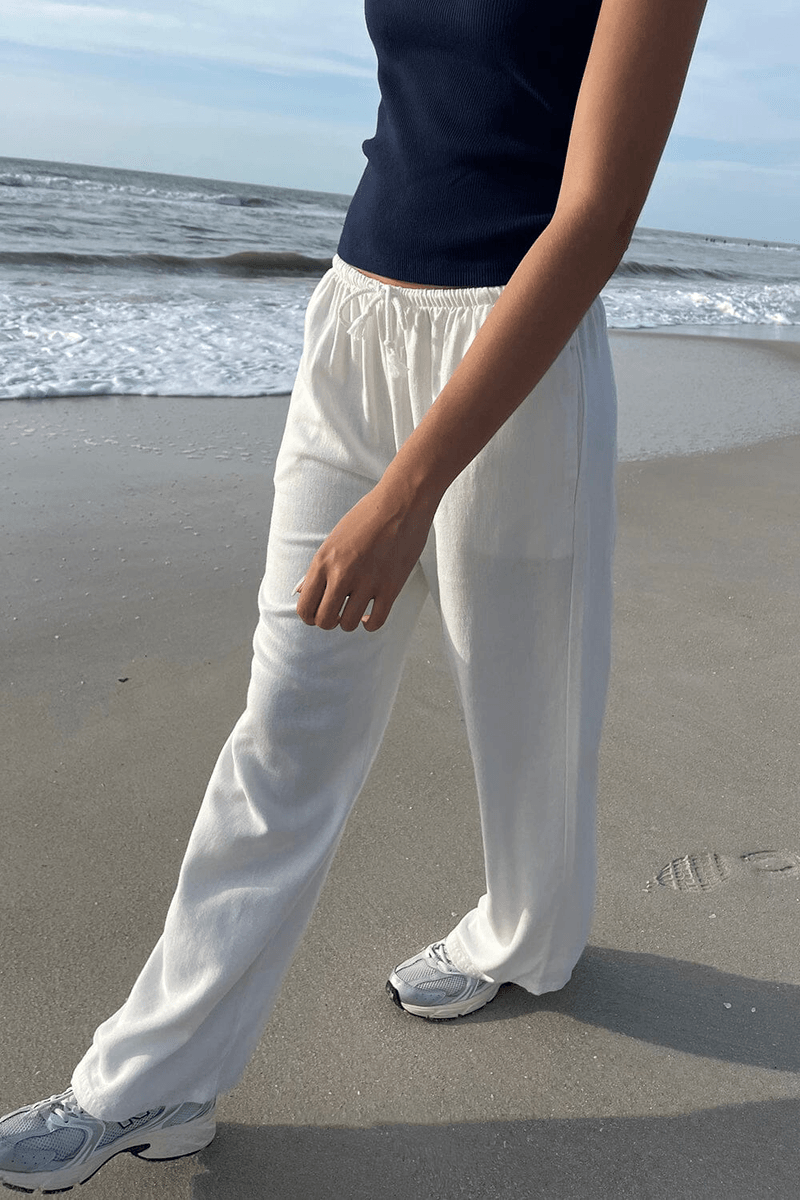 kalhoty Brandy Melville Elisabeth V Barvě Slonové Kosti Mají Výšku 10 Palců (25 Cm) A Vnitřní Délku 29 Palců (75 Cm), Což Zajišťuje Pohodlné Nošení, Které Lichotí Každé Postavě. Pas O šířce 23 Palců (66 Cm) Se Rozšiřuje Pro Větší Flexibilitu, Což Tyto Kalhoty činí Ideálními Jak Pro Neformální Výlety, Tak Pro Elegantnější Akce. Ať Už Je Kombinujete S Neformálním Tričkem Nebo Je Oblékáte S Stylovou Blůzou, Tyto Kalhoty Jsou Dostatečně Univerzální Pro Jakoukoli Příležitost.