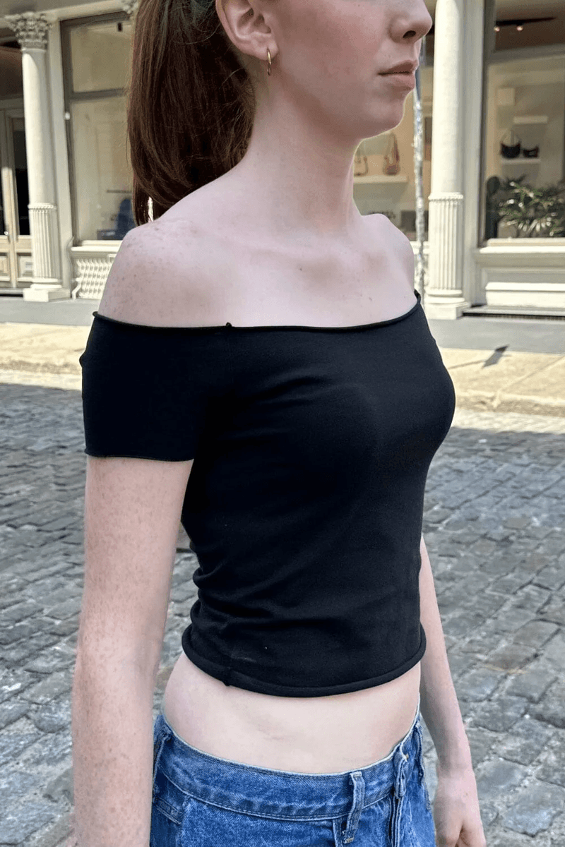 černý Crop Top Brandy Melville Bonnie Je Nezbytným Doplňkem Vaší Kolekce. Jeho Design S Odhalenými Rameny Dodává Hravý Nádech, Což Ho činí Ideálním Pro Kombinaci S Džínami S Vysokým Pasem Nebo Roztomilou Sukní. Elastická Tkanina Zajišťuje Pohodlné Nošení, Což Vám Umožňuje Se Volně Pohybovat A Přitom Vypadat Bez Námahy Stylově.
