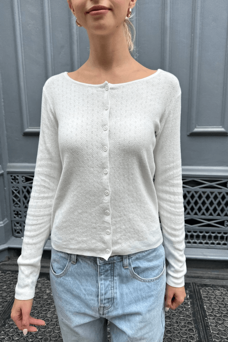 pozvedněte Svůj šatník Stylovým A Univerzálním bílým Topem Brandy Melville Athelia. Tento Chic Bílý Top S Knoflíky A Dlouhým Rukávem Je Ideální Pro Jakoukoli Příležitost, Což Z Něj činí Nezbytný Kousek Pro Módní Nadšence.