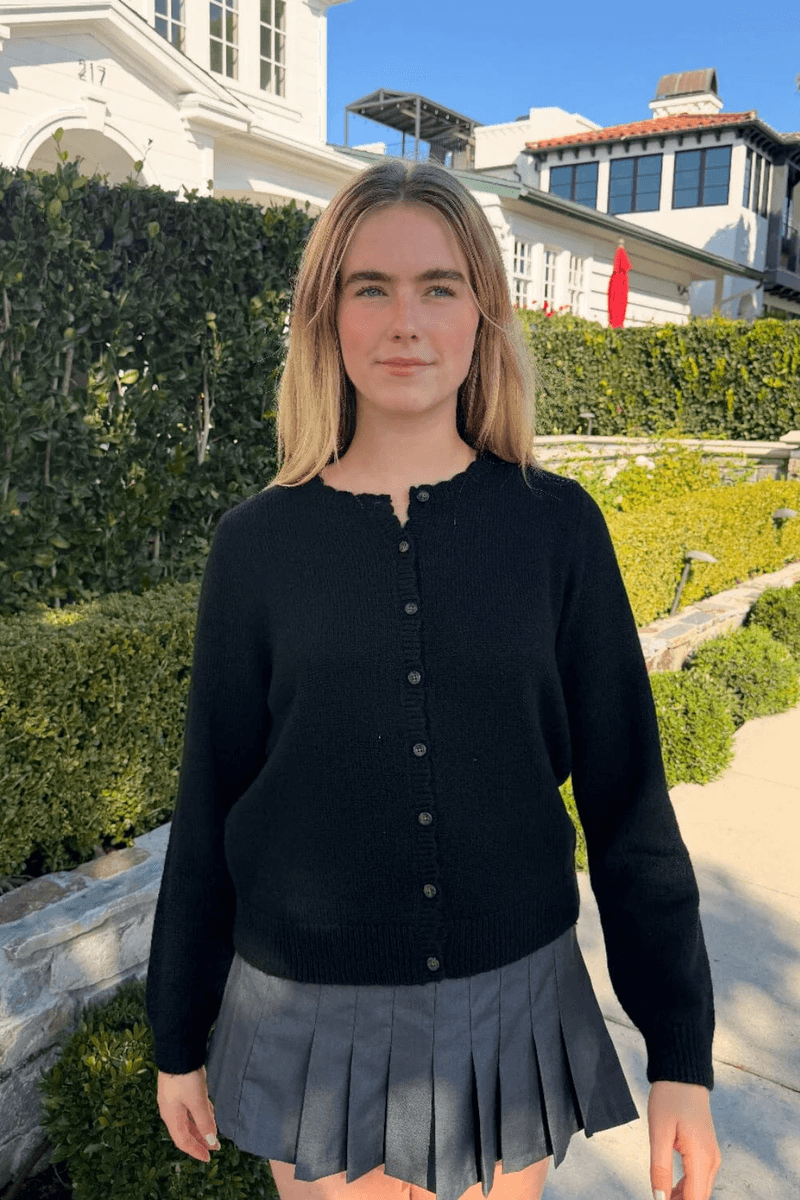 pozvedněte Svůj šatník S Luxusním černým Vlněným Cardiganem Brandy Melville Amalie. Tento Vynikající Cardigan Spojuje Pohodlí Se Stylem, Což Z Něj činí Nezbytný Kousek Pro Každého, Kdo Sleduje Módní Trendy. Ideální Pro Vrstvení, Bez Námahy Doplňuje Jakýkoli Outfit.