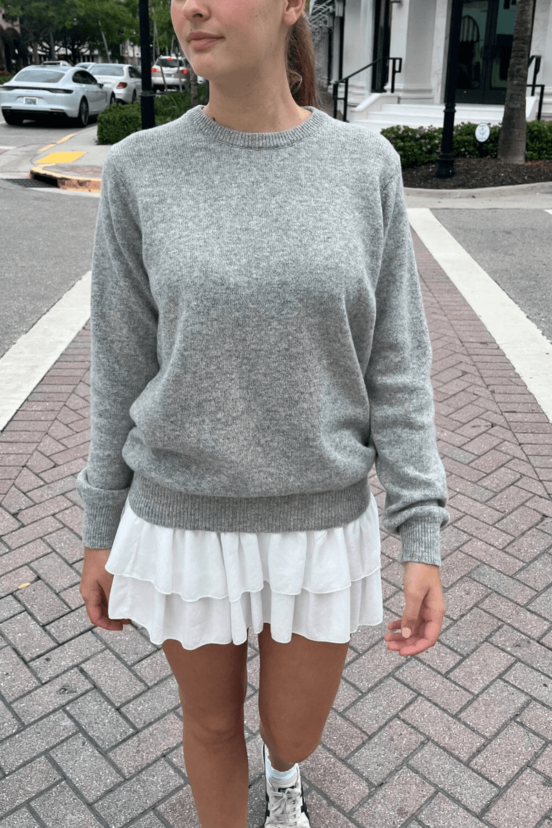 pozvedněte Svůj šatník S svetrem Brandy Melville Martha šedým, Nadčasovým Kouskem, Který Dokonale Spojuje Eleganci A Pohodlí. Tento Klasický Svetr S Kulatým Výstřihem Je Vyroben Z Luxusní Těžké Vlněné Směsi, Což Z Něj činí Nezbytnost Pro Jakýkoli Stylový Outfit.