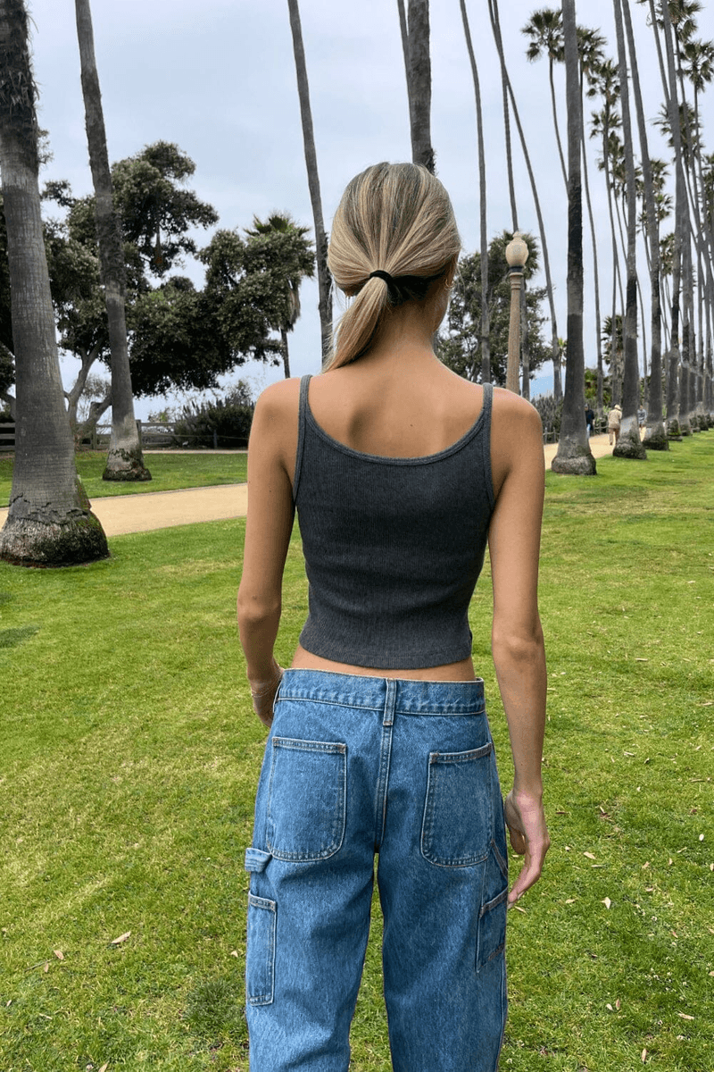 crop Top Beyonca Od Brandy Melville V Tmavě Melírované šedé Není Jen Další Top; Je To Módní Základ, Který Přináší Nádech Bezstarostného šiku Do Vašeho Každodenního Vzhledu. S Délkou 16 Palců (41 Cm) A Obvodem Hrudníku 10 Palců (26 Cm) Je Tento Top Navržen Tak, Aby Lichotil Všem Typům Postavy. Lehká, žebrovaná Bavlněná Tkanina Zajišťuje, že Se Budete Cítit Pohodlně Po Celý Den, Ať Už Jste Venku S Přáteli Nebo Se Relaxujete Doma.