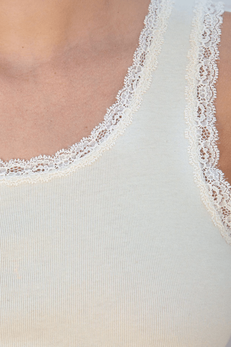 objevte Top S Krajkovým Lemem Brandy Melville Ronnie Rib V Krémové Barvě