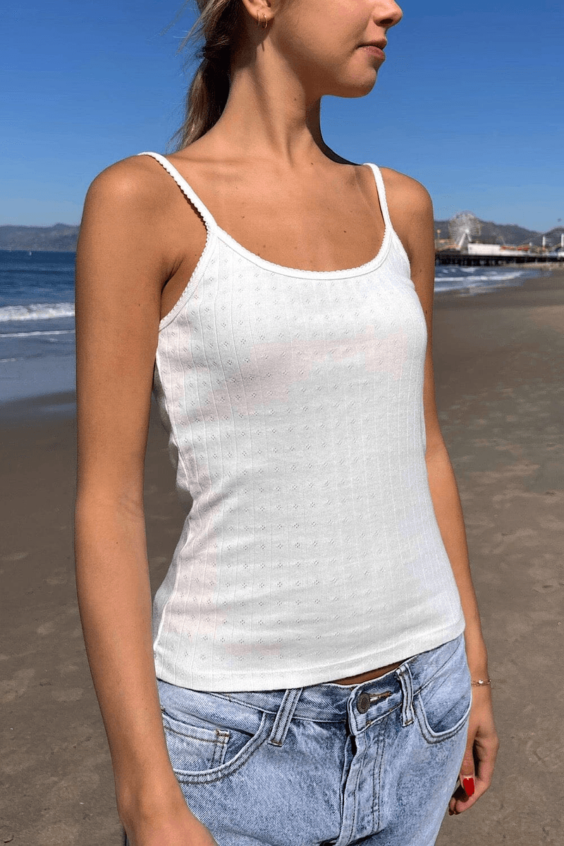 nenechte Si Ujít Příležitost Vlastnit bílý Top S Očky Brandy Melville Skylar. Přidejte Ho Do Svého Košíku Ještě Dnes A Vyrazte Ven Se Stylem!