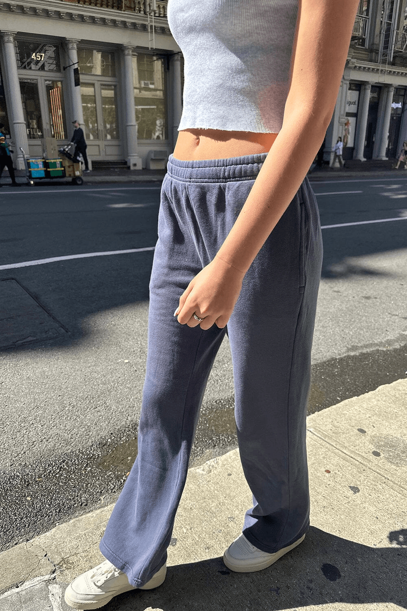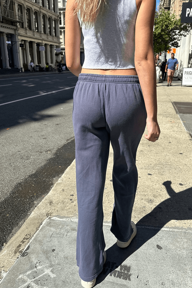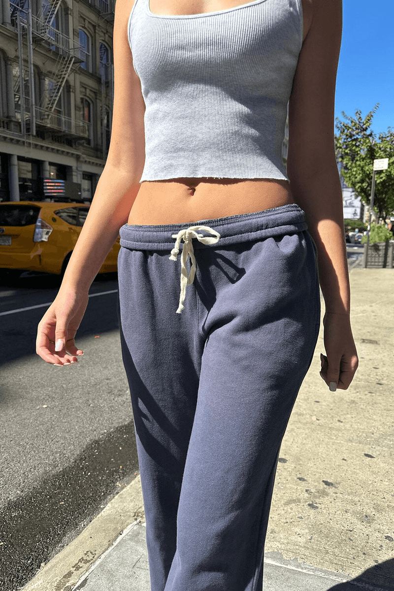 gå Ikke Glip Af Chancen For At Forbedre Din Garderobe! Få Fat I Dine brandy Melville Anastasia Tie Sweatpants I Falmet Marineblå I Dag Og Oplev Den Perfekte Kombination Af Komfort Og Chic Stil!