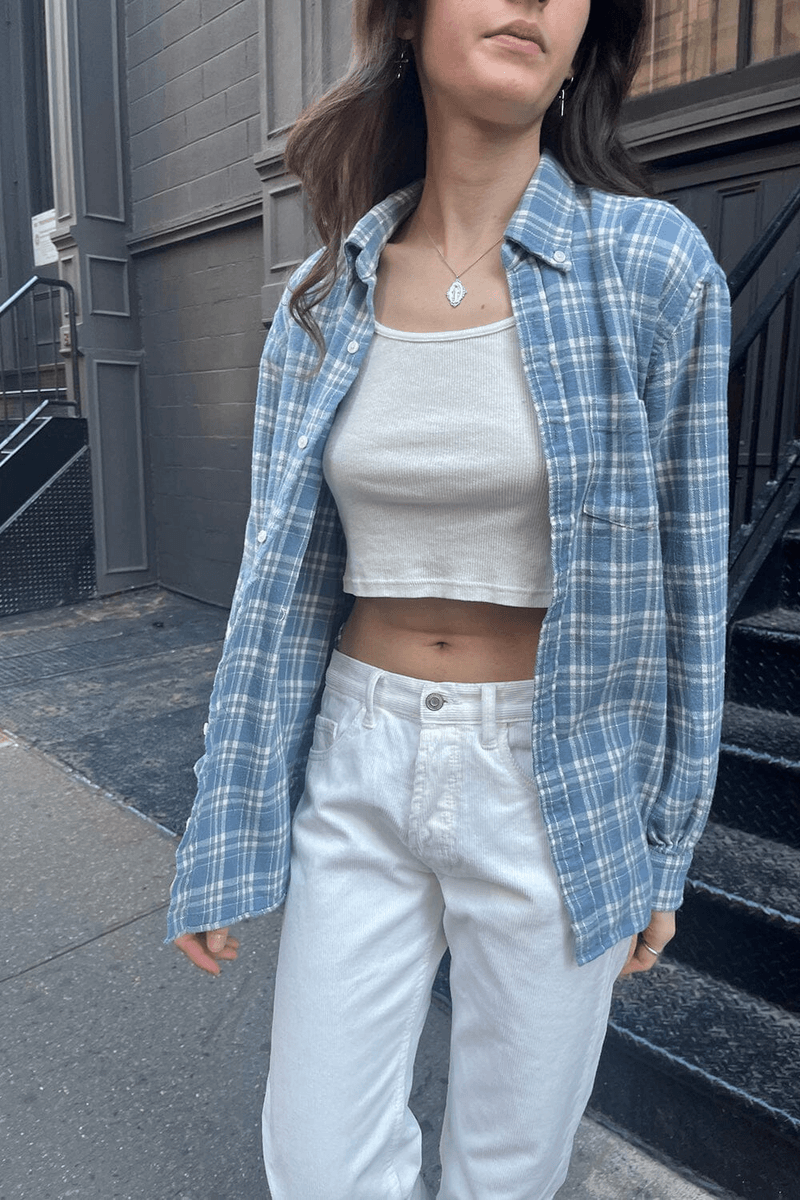 Brandy Melville Hazel Flannel Top Himmelblå Og Hvid Ternet (deaktiver Ikke) Ok