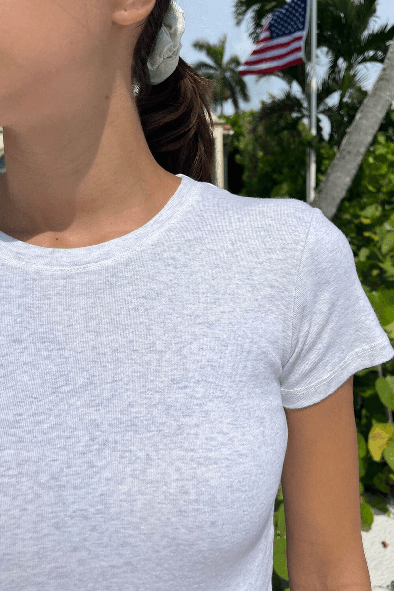 brandy Melville Loreen Toppen Lys Heather Grå Har En Fitted Stil Med En Længde På 20 Tommer (51 Cm) Og En Brystmåling På 13 Tommer (33 Cm). Uanset Om Du Klæder Dig På Til En Afslappet Brunch Eller Slapper Af Derhjemme, Er Denne Basis T-shirt Dit Go-to Valg. Dens Tynde Stof Sikrer åndbarhed, Hvilket Gør Den Ideel Til Brug året Rundt.