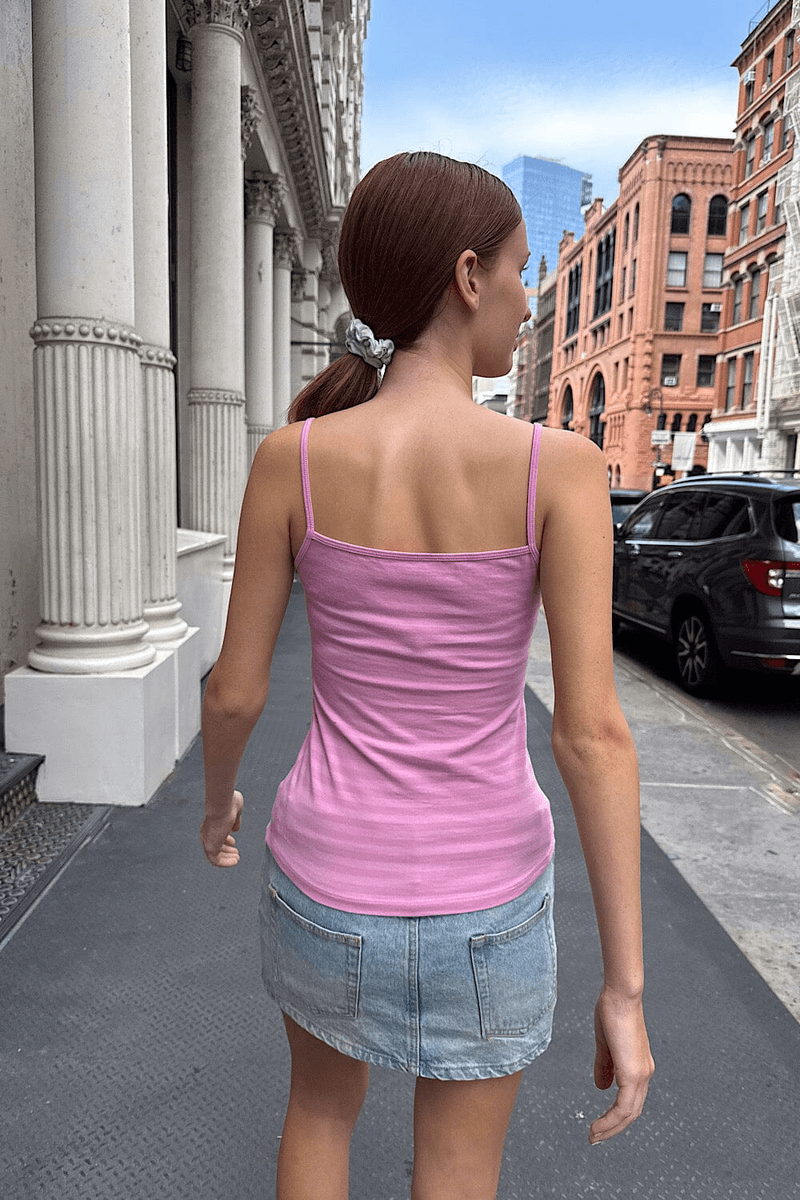 erweitern Sie Ihre Sommergarderobe Mit Dem brandy Melville Tiffany Stripes Tank In Einem Bezaubernden Bubblegum Pink. Dieses Stilvolle Spaghetti-Träger-Top Verfügt über Charmante Streifen, Die Perfekt Für Jeden Lässigen Ausflug Oder Strandtag Sind. Mit Seinem Verspielten Design Werden Sie überall, Wo Sie Hingehen, Die Blicke Auf Sich Ziehen!