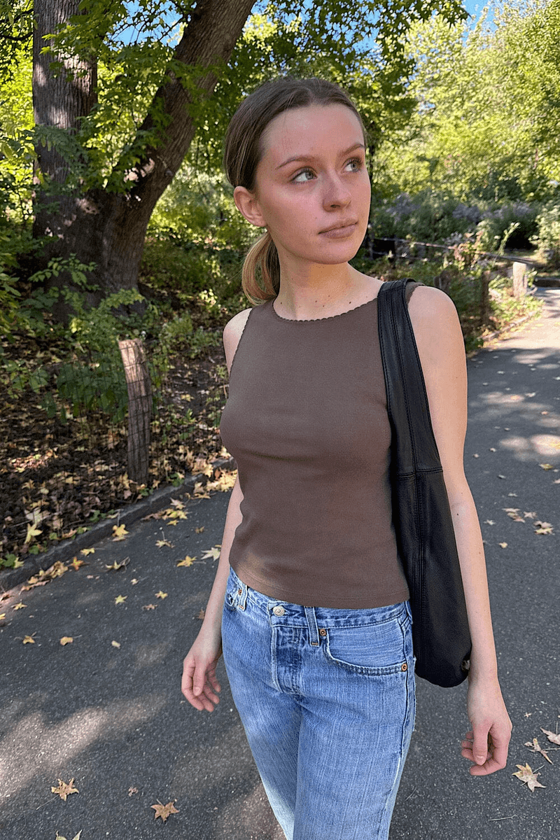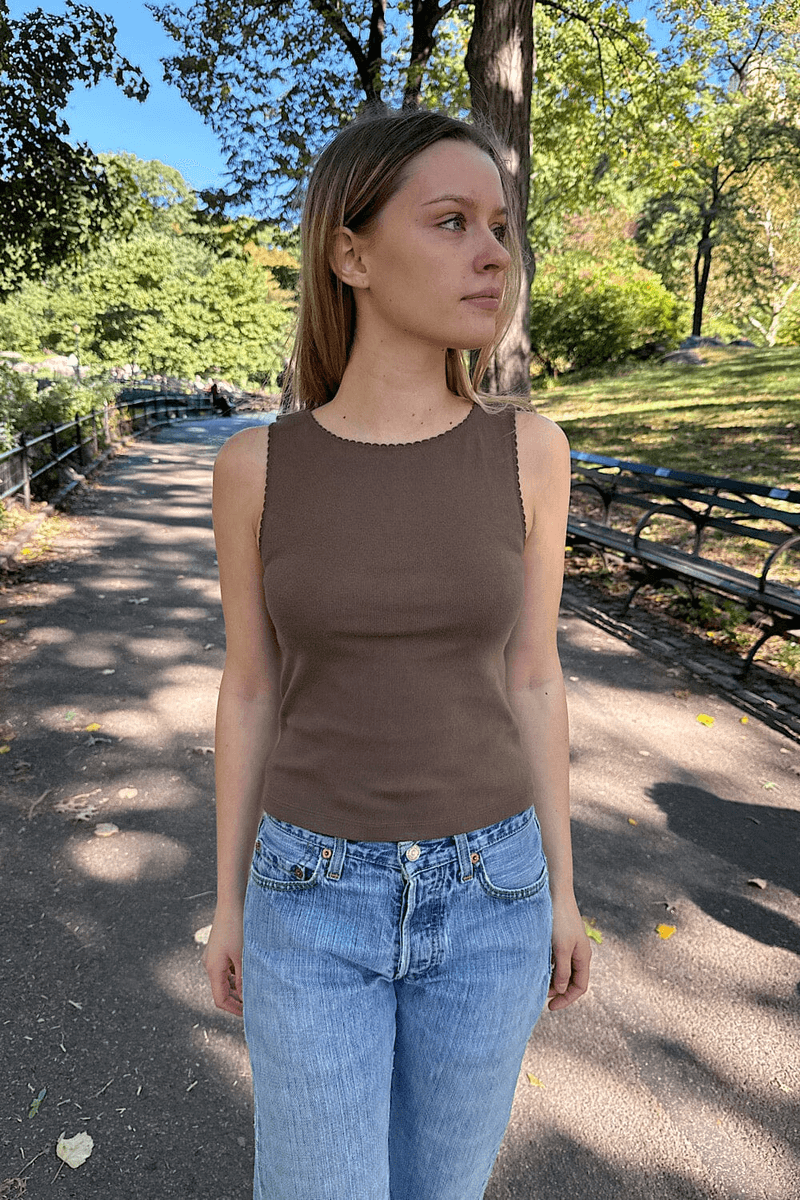 Erhöhen Sie Ihre Garderobe Mit Dem Brandy Melville Vicki Tank Dunkelbraun, Einem Must-Have Für Jede Modebewusste Person. Dieses Klassische Tanktop Mit Hohem Hals Ist So Gestaltet, Dass Es Stil Mit Komfort Kombiniert, Was Es Perfekt Für Lässige Ausflüge Oder Zum Layering Unter Ihren Lieblingsjacken Macht.