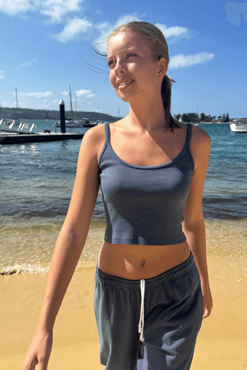 brandy Melville Beyonca Crop Tank σε ξεθωριασμένο ναυτικό μπλε