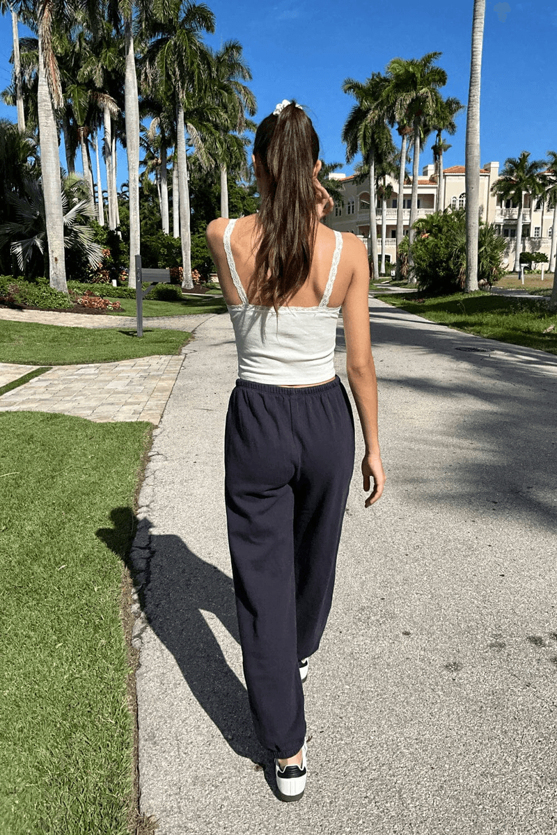 ανακαλύψτε την άνεση των παντελονιών φούτερ Brandy Melville Rosa Tie σε ναυτικό μπλε