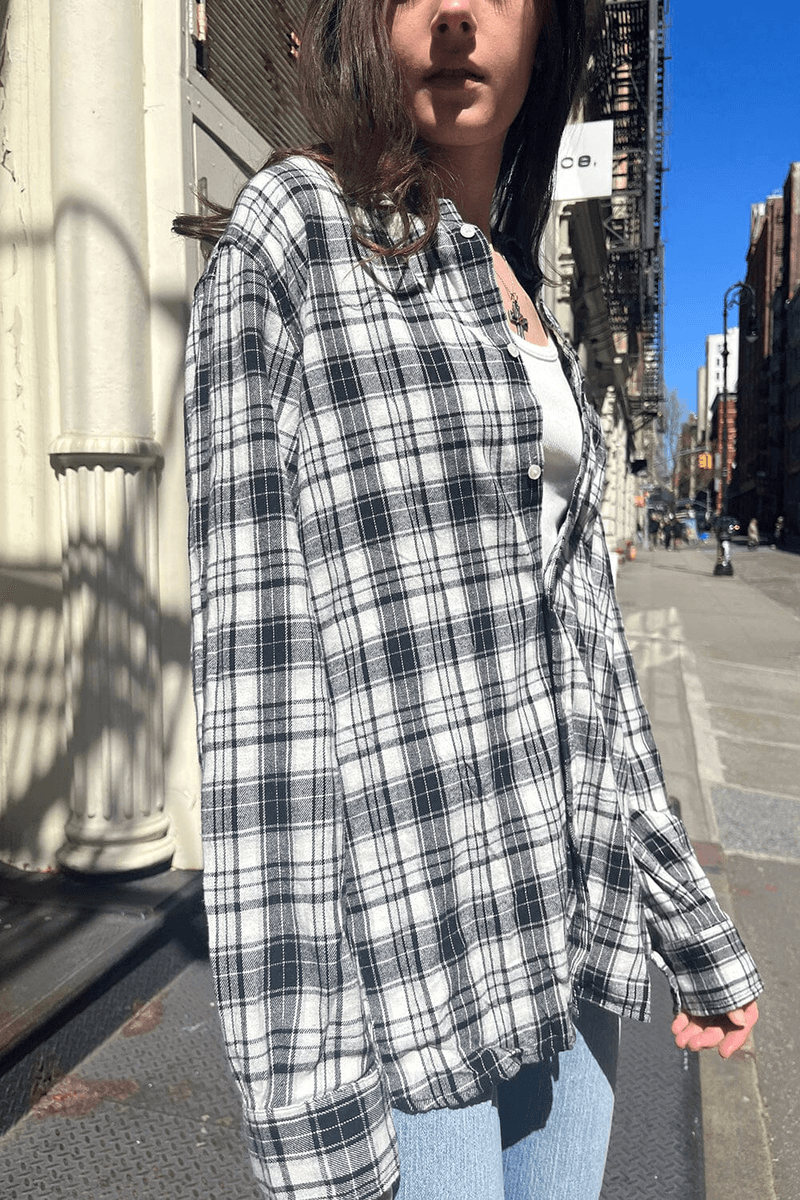 Discover the Brandy Melville Hazel Flannel Top in Black White Plaid