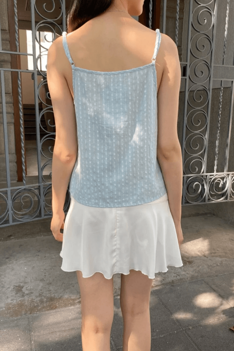 tõsta Oma Suve Garderoobi brandy Melville Alice Eyelet Tank Helesinis. See Võluv Tank Top ühendab Stiili Ja Mugavuse, Muutes Selle Ideaalseks Valikuks Sooja Päeva Ja Päikeseliste Väljasõitude Jaoks.