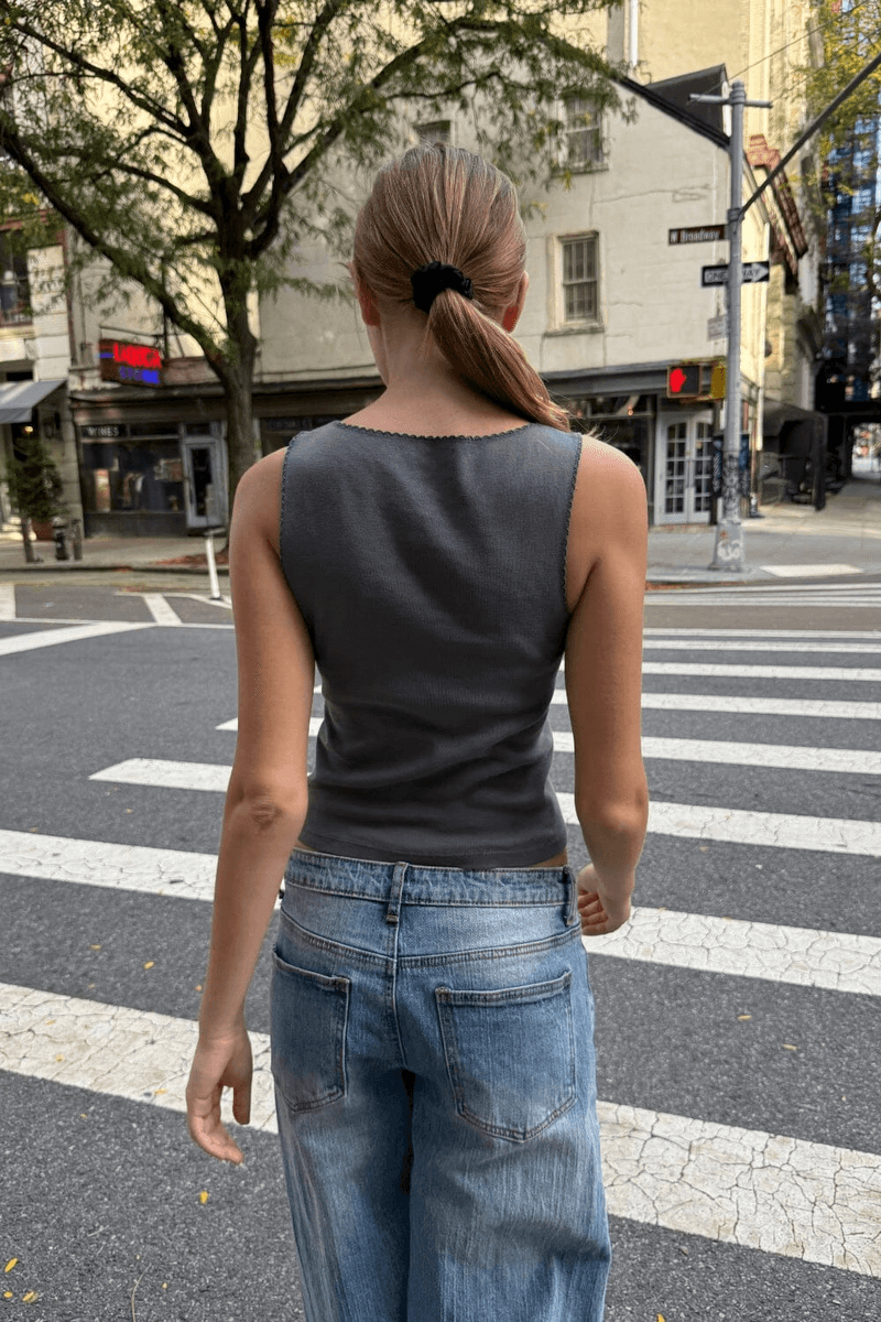 brandy Melville Vicki Tank Tumehall Ei Ole Lihtsalt Veel üks Põhikanga Top; See On Avalduste Tegemise Ese, Mis Suudab Vaevata üleminekuid Juhuslikest Väljasõitudest šikidele õhtutele. Selle Kõrge Kaeluse Disain Ja Lainelised Servad Lisavad Elegantsi, Muutes Selle Lihtsaks Sobitamiseks Sinu Lemmik Teksade Või Seelikutega.