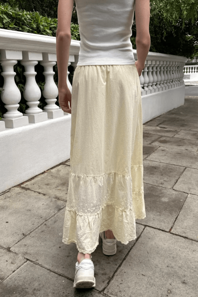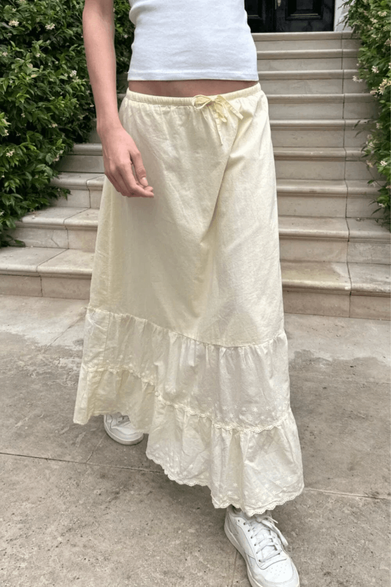 با دامن زیتونی برند ملویل زرد پاستلی به سبک بی‌زحمت قدم بگذارید. این دامن بلند و روان با طراحی دلنشین پرایری و ظرافت مدرن ترکیب شده است و آن را به افزودنی ایده‌آل برای کمد لباس شما تبدیل می‌کند. چه برای یک مناسبت ویژه لباس بپوشید و چه از یک روز غیررسمی لذت ببرید، این دامن ظاهر شما را ارتقا می‌دهد.