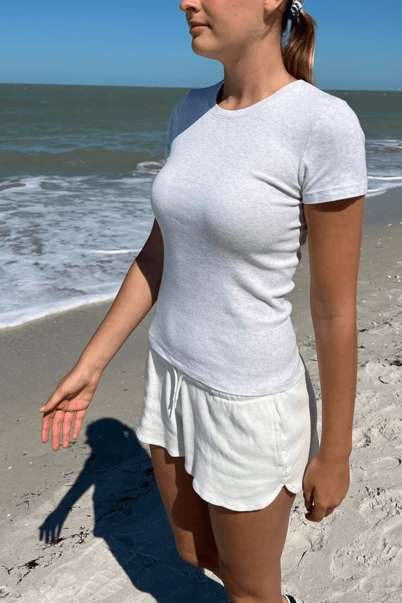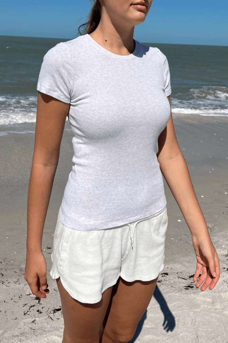 le haut Chloé De Brandy Melville Gris Argenté N'est Pas Qu'un Simple Haut ; C'est Une Pièce Maîtresse. Son Tissu Léger En Fait Un Choix Idéal Pour Les Journées Chaudes Ou Comme Couche De Base Confortable Par Temps Frais. Associez-le à Vos Jeans Préférés Pour Un Look Décontracté Ou Habillez-le Avec Une Jupe Pour Une Soirée. Ce Haut Est Parfait Pour Un Brunch, Du Shopping Ou Se Détendre à La Maison.