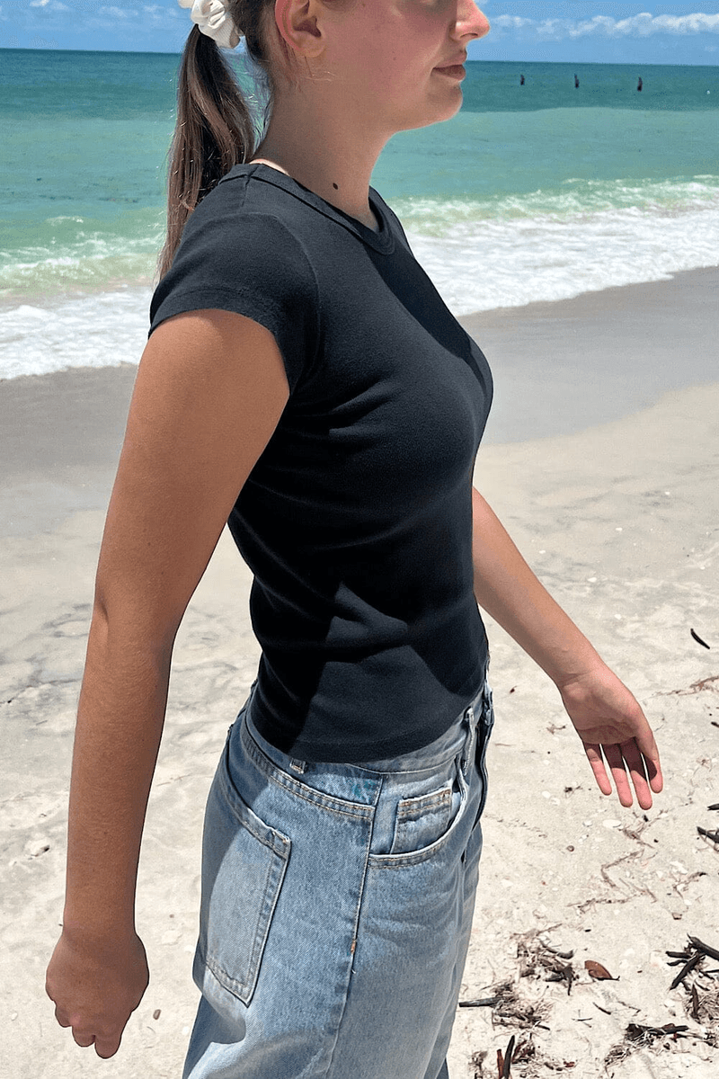 élevez Votre Garde-robe Avec Le haut Hailie De Brandy Melville Noir, Un Incontournable Pour Toute Personne à La Mode. Ce Tee-shirt Ajusté Et Court à Manches Courtes Allie Style Et Confort, En Faisant Votre Haut De Prédilection Pour Toutes Les Occasions.