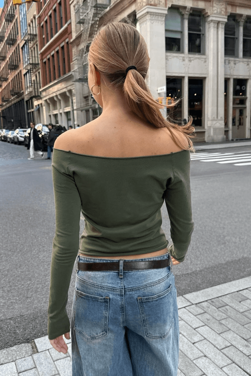 élevez Votre Garde-robe Avec Le Magnifique haut Bonnie De Brandy Melville En Forêt Profonde. Ce Haut à Manches Longues Et Décolleté Est Le Mélange Parfait De Style Et De Confort, Conçu Pour Ceux Qui Aiment Se Démarquer. Fabriqué à Partir D'un Mélange De Coton Doux, Il Est Idéal Pour Toutes Les Occasions, Que Vous Sortiez Avec Des Amis Ou Que Vous Profitiez D'une Journée Confortable à L'intérieur.
