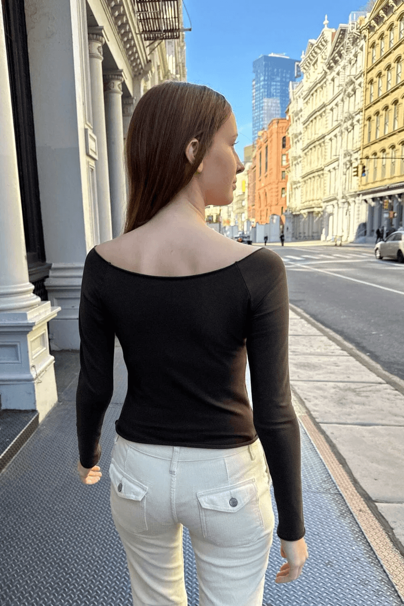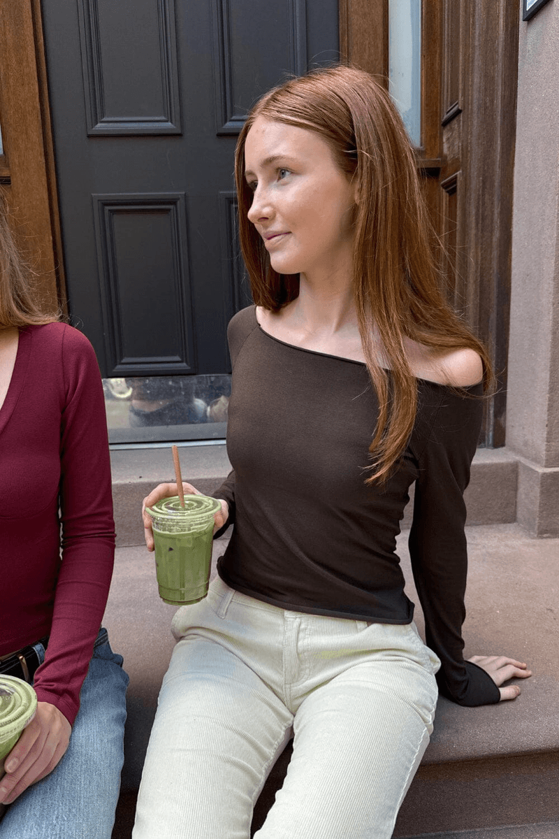 élevez Votre Garde-robe Avec Le top Bonnie De Brandy Melville Mocha élégant. Ce Chic Top à Manches Longues Et Décolleté épaule Dénudée Est Conçu Pour La Femme Moderne Qui Apprécie à La Fois Le Confort Et Le Style.