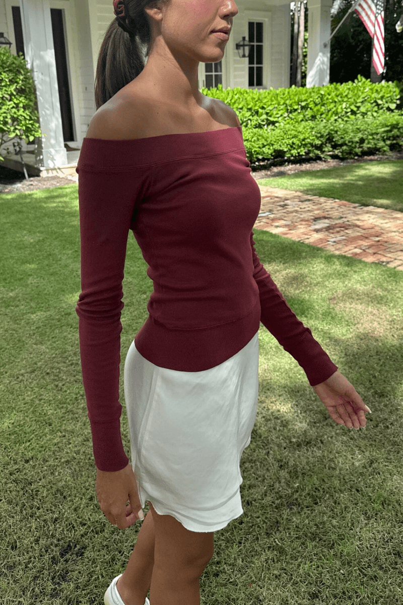 élevez Votre Garde-robe Avec Le Magnifique top Ginny Burgundy De Brandy Melville. Ce Top Chic à épaules Dénudées Est Un Incontournable Pour Les Personnes à La Mode à La Recherche De Polyvalence Et De Style.