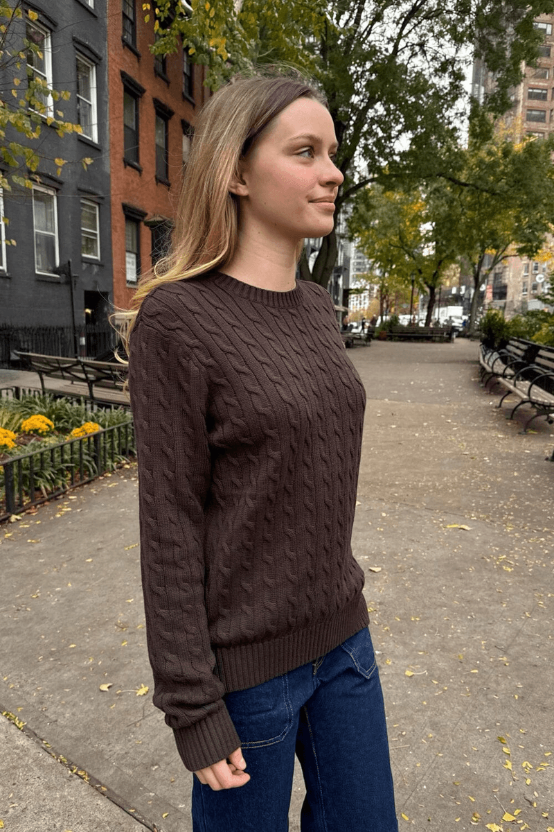 le pull Martha Mocha De Brandy Melville N'est Pas Seulement Un Pull ; C'est Une Pièce Maîtresse. Son Design En Tricot épais Offre à La Fois Chaleur Et Style, En Faisant Un Ajout Essentiel à Votre Garde-robe. Associez-le à Un Jean Pour Une Sortie Décontractée Ou Superposez-le Sur Une Robe Pour Un Look Chic Et Superposé.