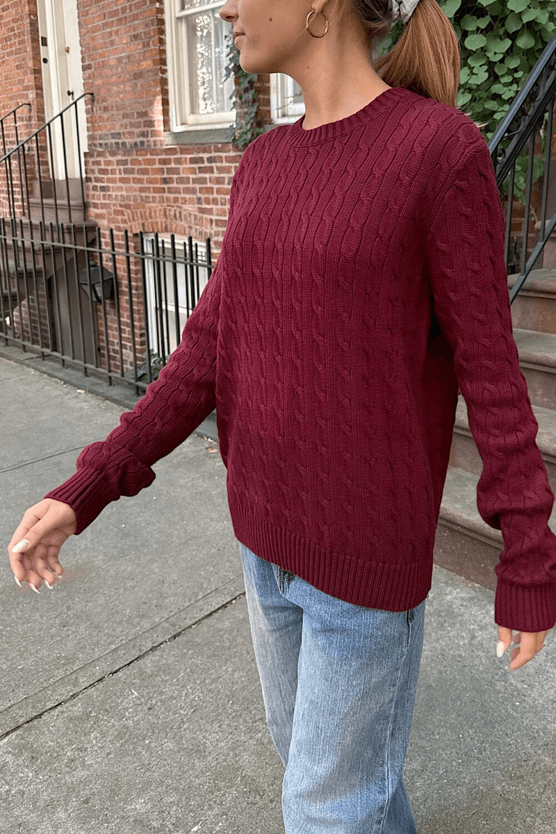 élevez Votre Garde-robe Avec Le pull Martha De Brandy Melville Bordeaux, Un Incontournable Pour Ceux Qui Apprécient Le Confort Et Le Style. Ce Pull En Tricot à Gros Câbles Offre Une Coupe Décontractée, Le Rendant Parfait Pour Les Soirées Confortables Et Les Sorties Décontractées.