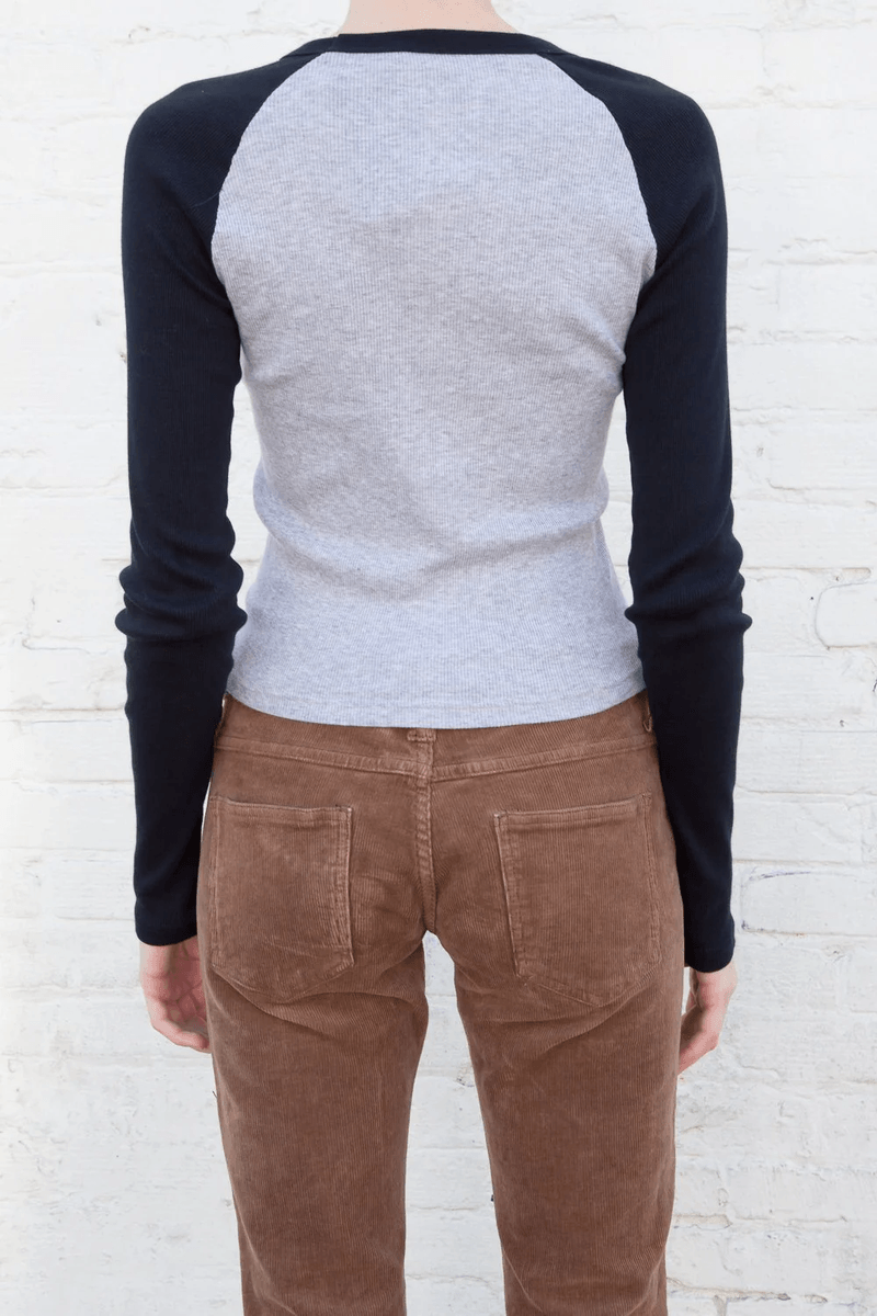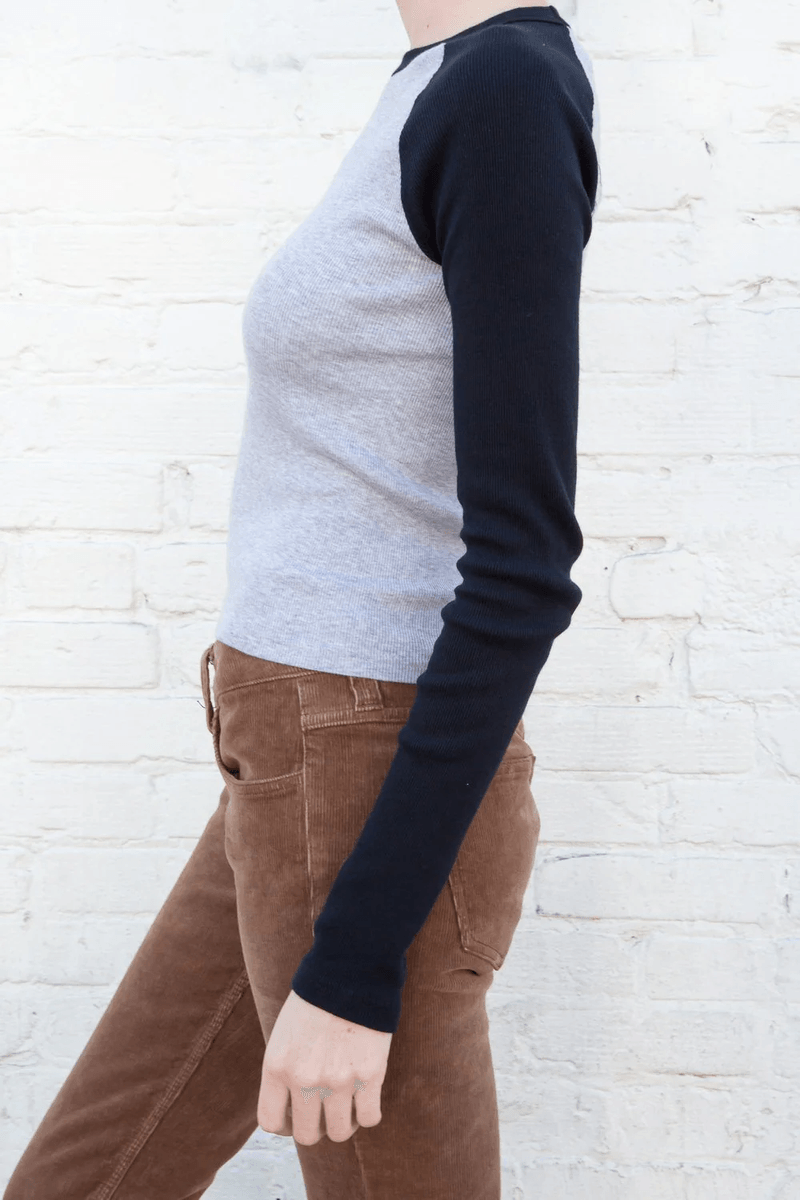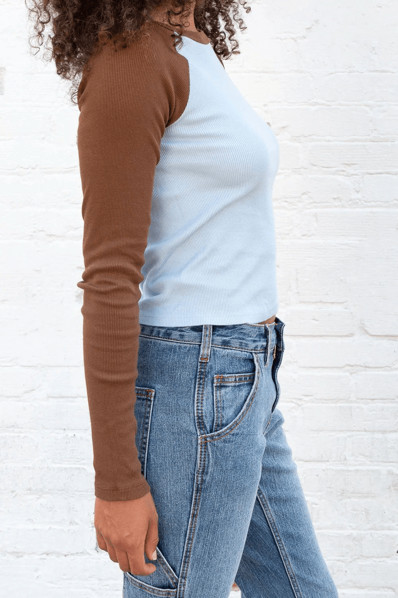 otkrijte Savršenu Kombinaciju Udobnosti I Stila S brandy Melville Bella Top Light Blue Brown. Ovaj Trendi Rebrasti Pamučni Baseball Top Ima živopisan Dizajn U Blokovima Boja Koji Bez Napora Poboljšava Svaki Ležerni Outfit. S Okruglim Izrezom I Dugim Rukavima, Idealan Je Za Slojevito Nošenje Ili Samostalno Nošenje.